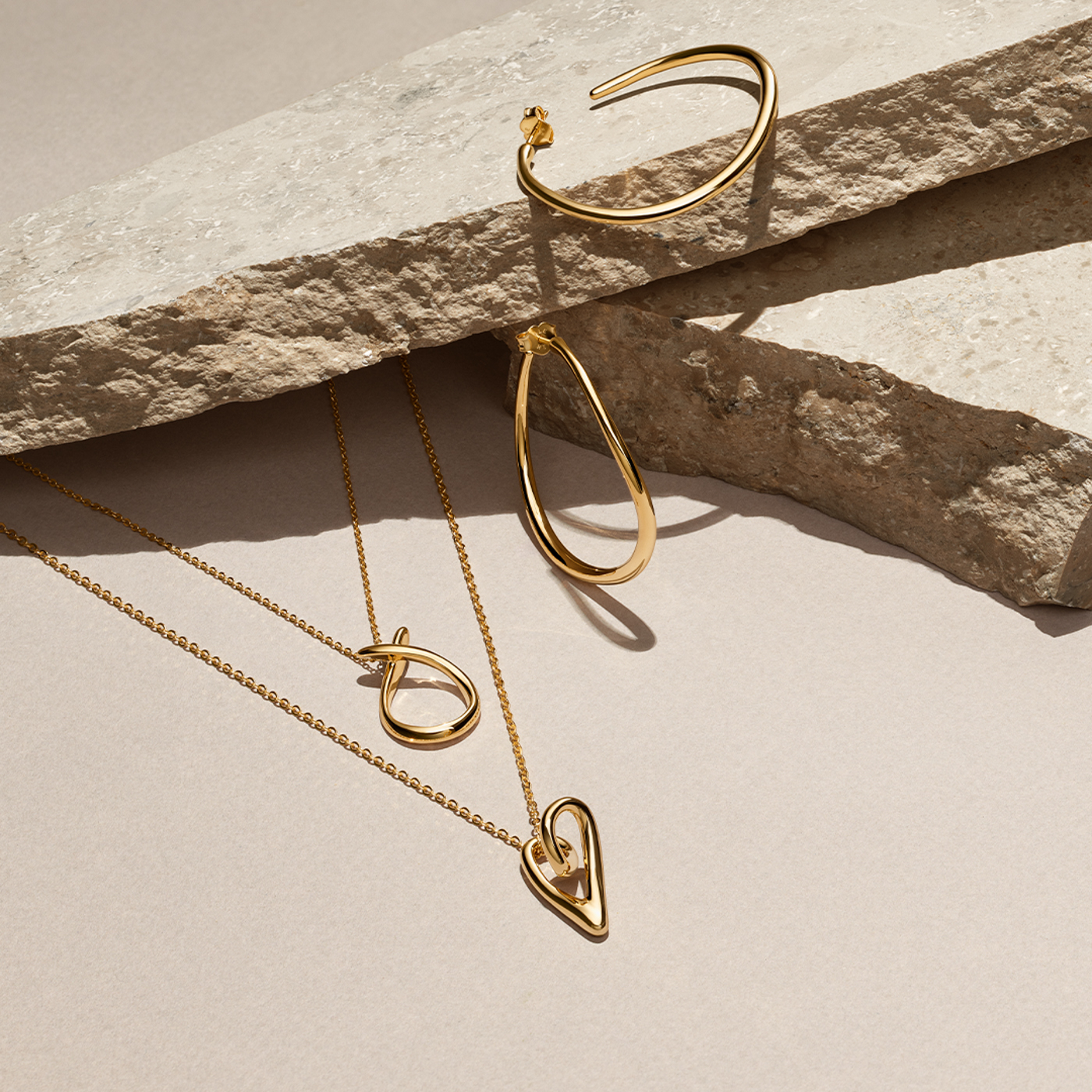 系列中的戒指設計適合疊戴造型,如有機線條疊戴戒指,由兩枚925銀戒指組成,戒指的粗細和起伏不一,呈現自然的形態。無論單獨佩戴或疊戴,都是戒指愛好者的理想選擇。另一款有機線條心形戒指,將愛意與大自然融合,鍍14k金戒環略呈起伏,金屬線條形成不規則心形,帶來立體雕塑感。