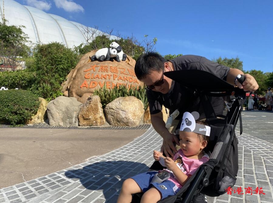 專程由九龍帶女兒來看大熊貓的張先生說:「女兒生日,她很喜歡大熊貓,知道今天有新的大熊貓到港,但來到才知大熊貓館關閉,不過園方也免費派了一些大熊貓紙帽,也有一些相關產品,買來打卡也很開心。」(記者:李銘欣 / 蔡啟文)