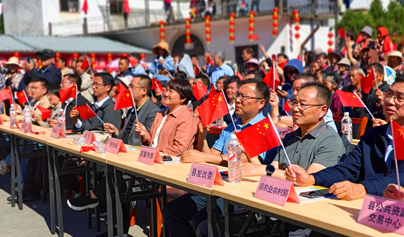 鄉音裊裊,「唱」不停。大鼓舞《祖國你好》拉開活動序幕,鏗鏘的鼓點敲出了農民群眾對祖國的滿腔熱愛,隨後白楊的游龍和瞻淇的魚燈來了一場聯袂演出,向觀眾獻上魚龍共舞,將整個活動氣氛點燃。舞蹈《雙腳踏上幸福路》,跳出了白楊村村民在豐收時節的喜悅和對幸福生活的嚮往。白楊人唱白楊歌,大合唱《白楊村之歌》唱出了白楊的鄉土文化和鄉村情懷,唱出了村民的自信和自豪。最後的大合唱《我和我的祖國》,現場觀眾們手搖紅旗齊聲合唱,唱出對祖國的祝福。說的是鄉音、唱的是鄉韻、舞的是鄉情,向農民致敬,為豐收禮讚。