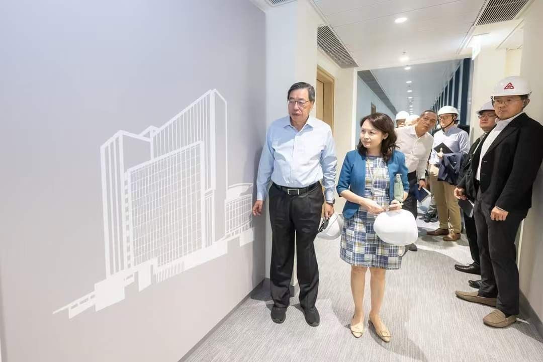 立法會主席梁君彥表示,11月23日是全體議員開始搬遷至綜合大樓9至14樓議員樓層新辦公室的大日子。今日(5日)下午,他和立法會秘書長衛碧瑤與政府跨部門團隊及擴建工程承辦商協興討論大樓擴建工程的最新進展,之後一同視察議員樓層。