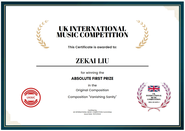 近日,中國「00後」博士劉澤鍇在2024年英國國際音樂比賽(UKIMC)原創作曲中獲得最高一等獎,這不僅是對他個人才華的認可,也是對中國音樂創新能力的一種肯定。