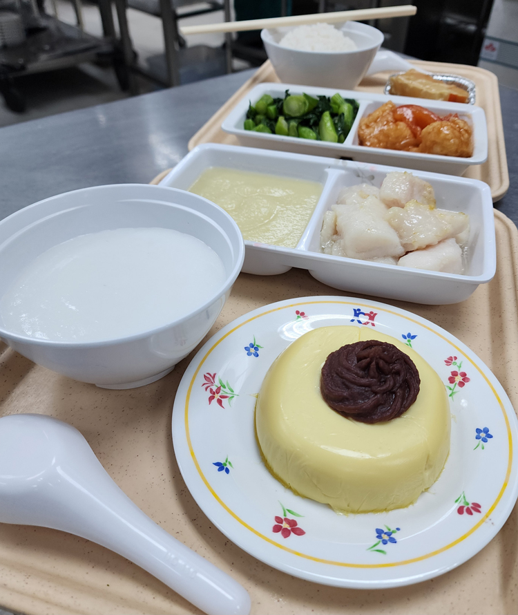 軟綿綿的燉蛋上有一抹清甜的紅豆蓉,令住院病人即使在醫院亦可嚐到節日氣氛。(醫管局)