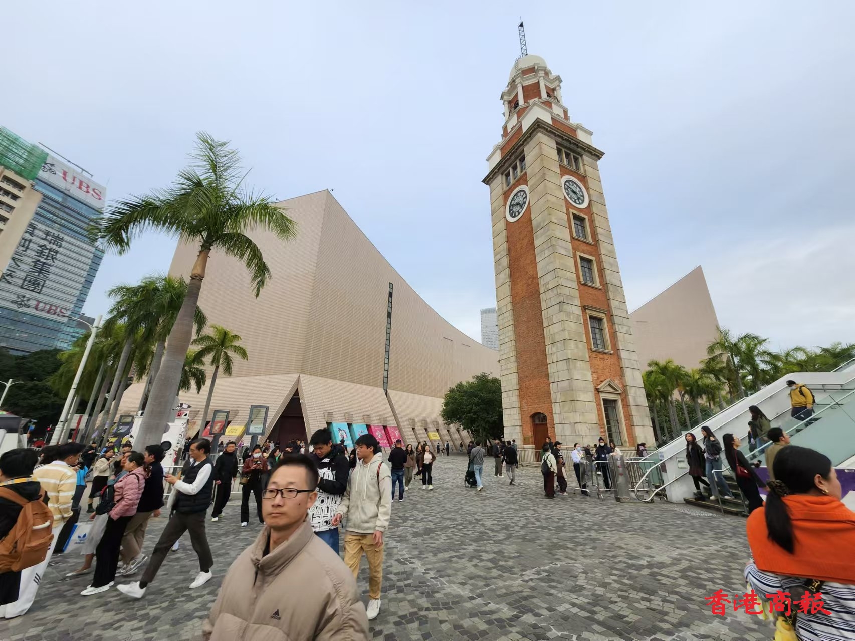 在尖沙咀碼頭及鐘樓一帶,吸引數以百計的旅客到場打卡留念,亦有遊客到名店購物,「一袋二袋」離開店舖,成功買到心頭好。