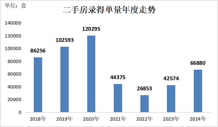 記者從深圳市房地產中介協會獲悉,2024年深圳二手房錄得量為66880套,對比2023年42574套,大幅增長57.1%,市場呈現明顯企穩回升態勢。