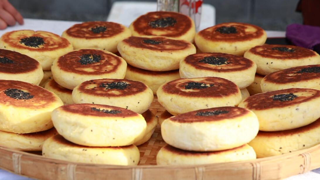 錢琴琴介紹:「酒釀餅是徽州當地的傳統美食,它的配料有精麵粉、土雞蛋、自釀的酒釀、芝麻、秘制桂花和白糖。」