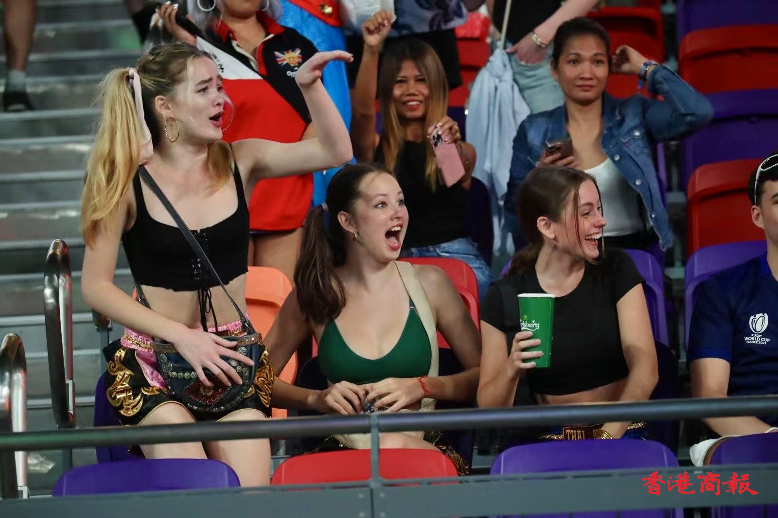 首度移師啟德體育園主場館的「國泰/滙豐香港國際七人欖球賽」(香港七欖)今日(28日)起展開一連三日的賽事。向來是球迷至愛之地的「南看台」繼續精彩,下午5時許已幾近滿座,場面非常熱鬧。成功「達陣」進入南看台的球迷盡情享樂,載歌載舞。全日賽事臨近尾聲時,球迷齊聲高唱《Sweet Caroline》,熱爆全場氣氛。(文、圖、片:志誠)