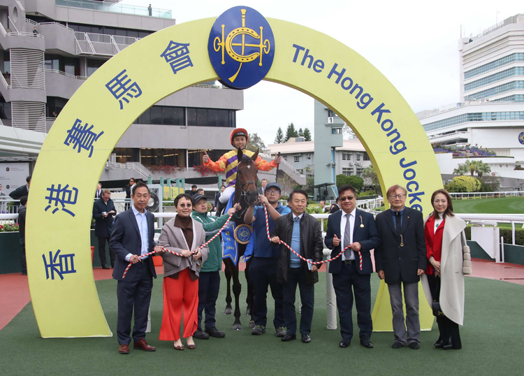 馬主羅琪茵上周日有「百賀飛駒」捧走打吡冠軍後,如今再憑「直線力山」勇奪主席錦標,好事成雙,真是旺氣逼人。姚本輝後大讚潘明輝發揮,至於下場部署傾向出戰1600米冠軍一級賽,屆時應會繼續潘明輝操刀。(文、圖、片:志誠)