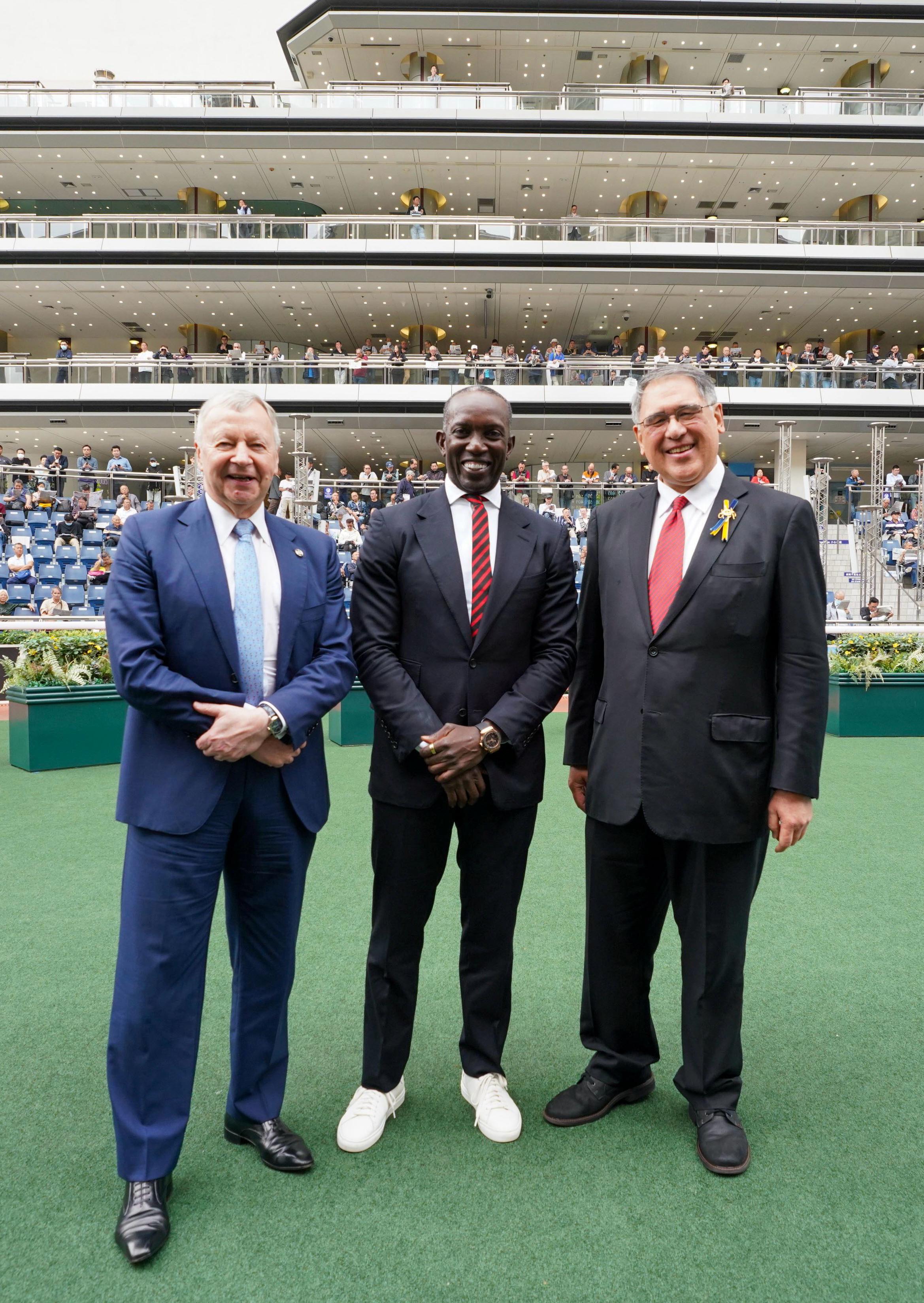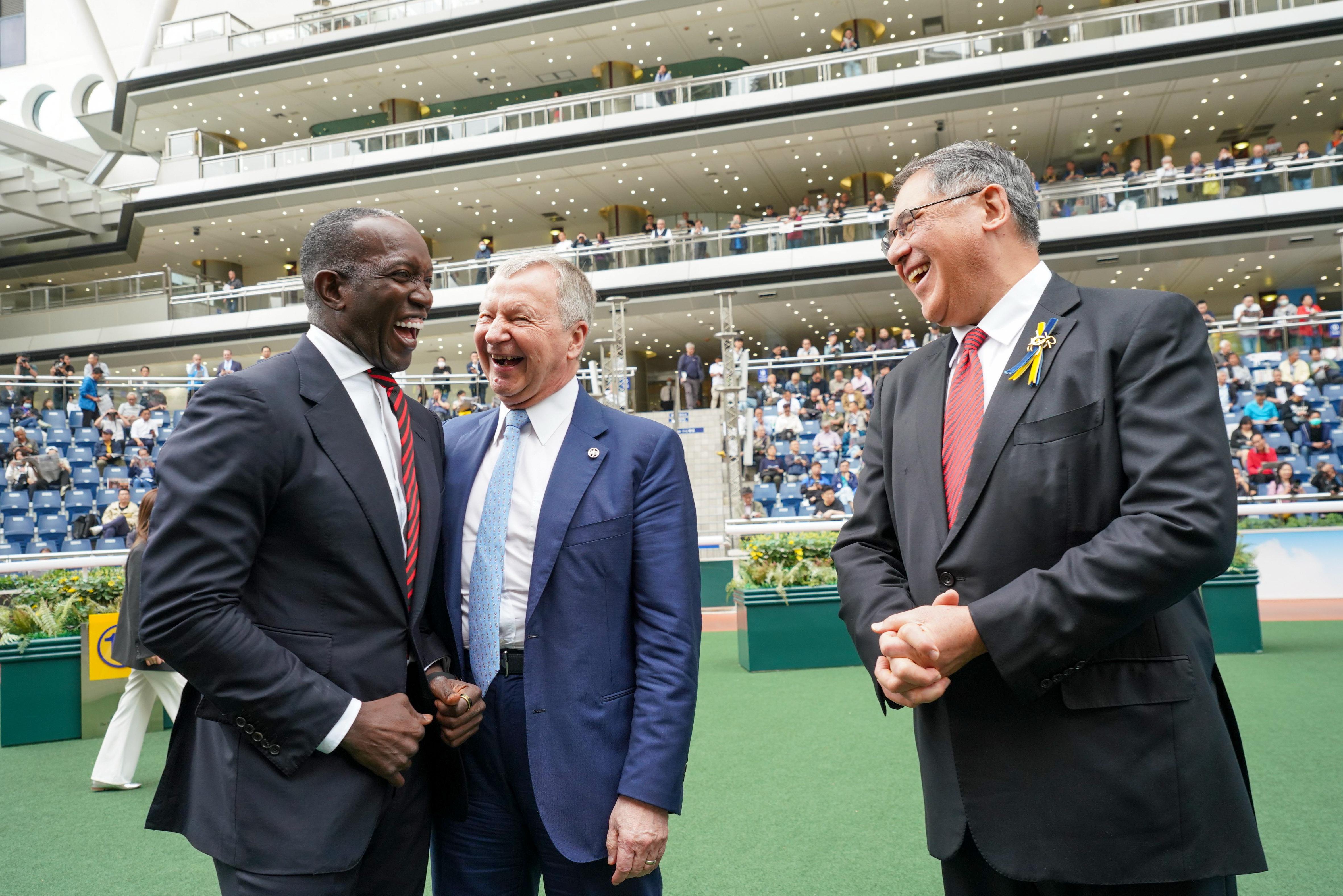 1999年助曼聯圓三冠王霸業、現年53歲的約基,當年與英格蘭前鋒高爾組成「黑雙煞」鋒線,令球迷津津樂道。這是約基第2次在香港觀賞賽馬,他大讚今日馬場氣氛十分熱鬧,猶如置身足球大賽之中,並指出騎師和足球員相似,兩者都是專業運動員,同樣擁有爭勝心。來自千里達的約基更笑言,若能成為馬主會將馬兒命名Trinidad(千里達)。
