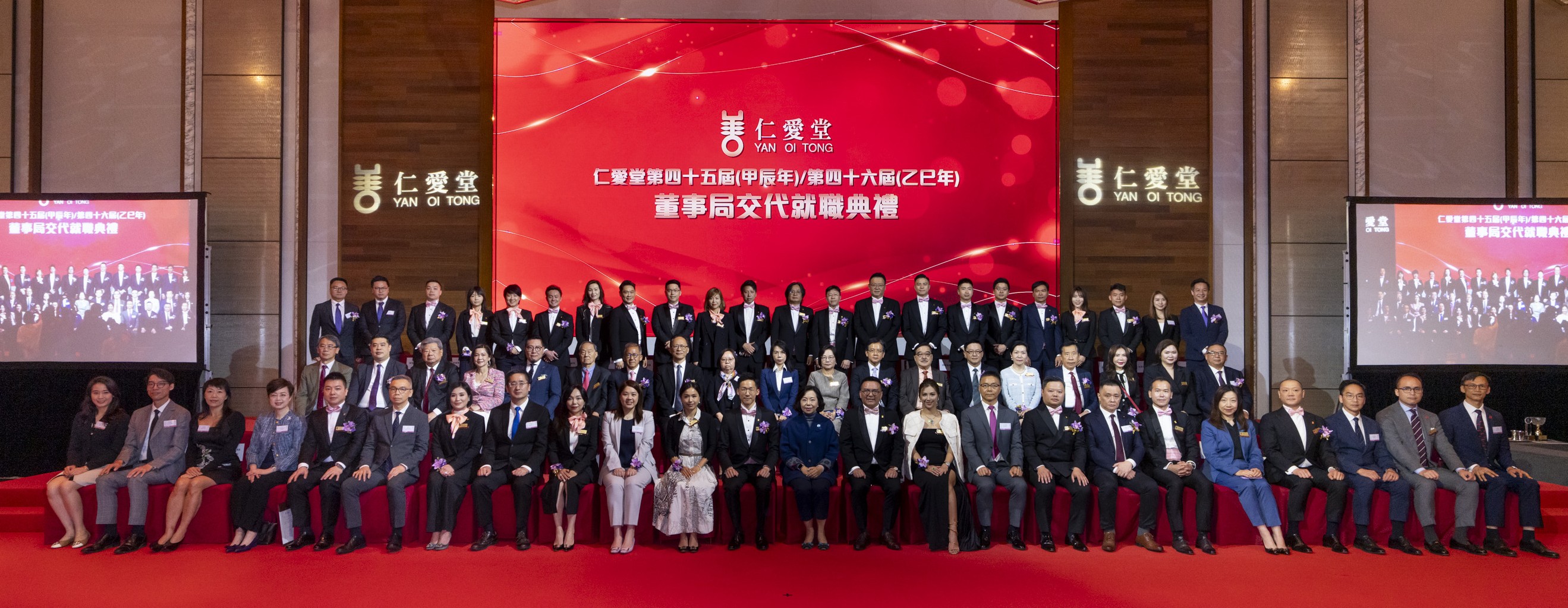 仁愛堂第四十五屆 (甲辰年) / 第四十六屆 (乙巳年) 董事局交代就職典禮日前假香港瑰麗酒店宴會大禮堂舉行,民政及青年事務局局長麥美娟主禮,中聯辦新界工作部副部長李功勛、商務及經濟發展局副局長陳百里、民政事務總署署長杜潔麗等。 在交代就職儀式上,仁愛堂第四十六屆董事局主席何俊亨在主禮嘉賓及諮議局委員的見證 下,帶領董事局成員進行宣誓儀式,並從麥美娟手上接過選任證書,正式肩負起推動仁愛堂善業的使命。