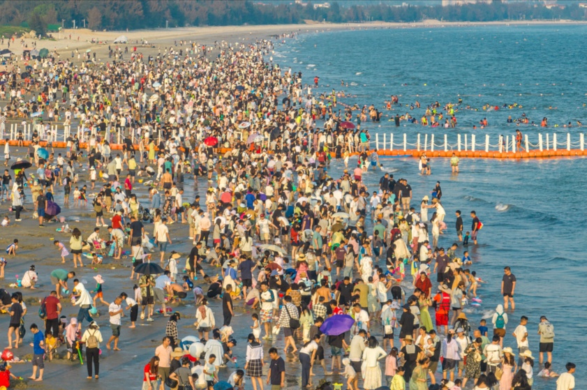 據統計,保利金町灣旅遊度假區單日客流約達7萬人次,玄武山旅遊景區迎來客流高峰,5天累計接待遊客18.1萬人次。