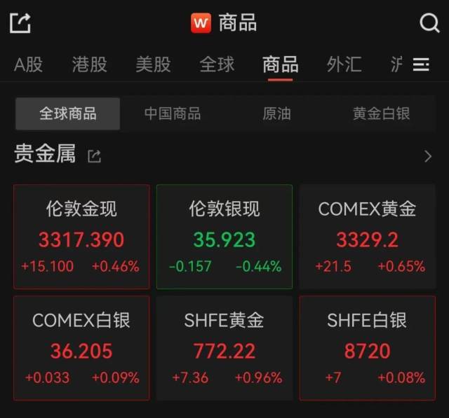 7月1日上午,現貨黃金繼續上漲,截至發稿,漲0.46%,報3317.390美元/盎司,COMEX黃金漲0.65%,報3329.2美元/盎司。