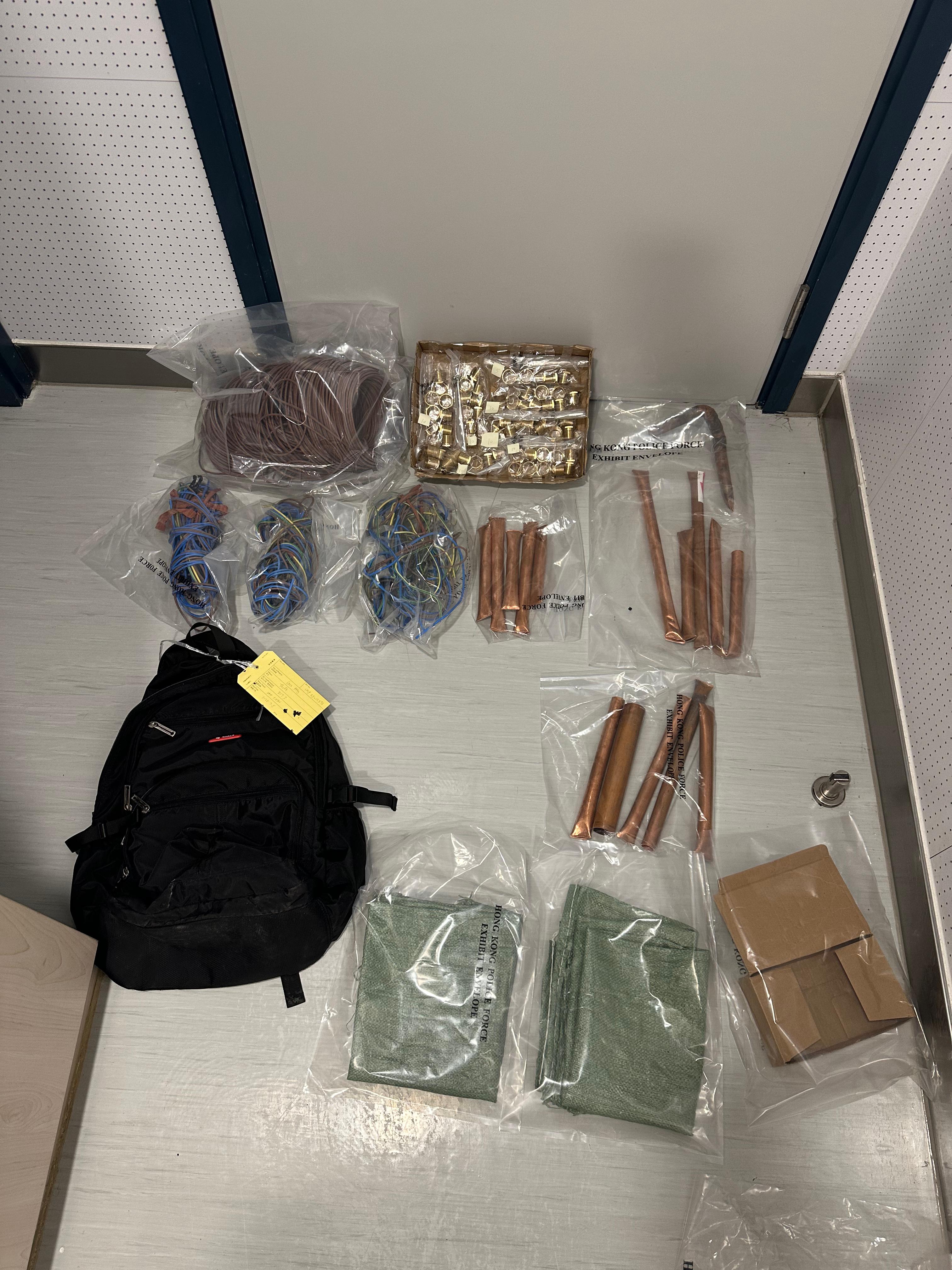 警方東九龍衝鋒隊人員昨日(5日)在觀塘協和街巡邏期間,在一間醫院的地盤外發現一名女子形跡可疑遂上前截查,在其背囊內發現65個銅喉接頭、4紮銅電線及15枝銅喉,總值約3400元,經調查後將該名姓吳(59歲)女子拘捕,涉嫌於地盤盜竊,現正被扣留調查,案件交由秀茂坪警區刑事調查隊第3隊跟進。