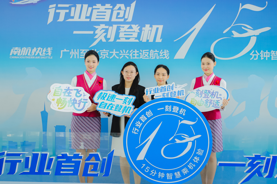7月8日起,南航在廣州-北京大興往返航線推出「極速一刻 自在登機」(以下簡稱「一刻登機」)服務,此航線取消了值機櫃枱停止辦理手續(值機截載)的時間要求,只需在航班登機口關閉前,即航班計劃起飛時刻之前15分鐘完成安檢並抵達登機口登機即可。