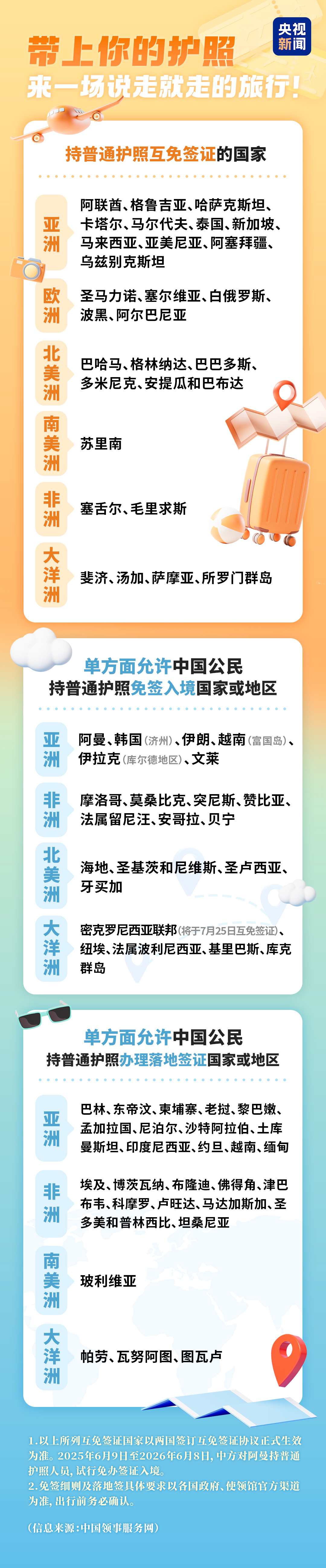 帶上護照,還有哪些國家可以「說走就走」?一圖了解↓