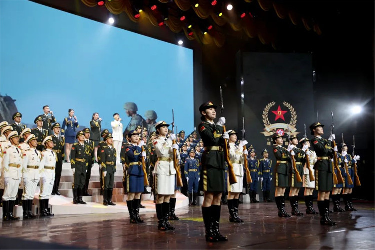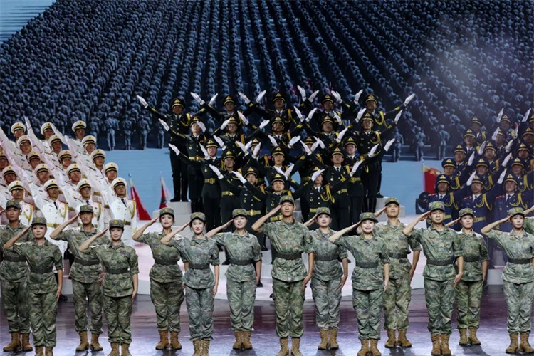 隨後駐香港部隊官兵為現場來賓獻上了精心創排的文藝演出。演出以兵唱兵、兵演兵的方式呈現火熱強軍實踐,表演唱《強軍有我》、《軍旗跟着黨旗走》,表達了駐軍官兵堅決聽黨指揮、矢志奮鬥強軍的忠誠擔當;歌曲聯唱《礪兵香江》、《我為香港站崗》,反映了駐軍部隊紮實練兵備戰、忠實履行防務的戰鬥姿態和過硬能力;合唱《強軍戰歌》,以激越高昂的旋律將演出氣氛推向高潮,展現了廣大官兵聚力攻堅、奮進一流的信心決心。在全場人員合唱《歌唱祖國》的熱烈氛圍中,招待會圓滿結束。整個活動簡約樸素、軍味戰味濃郁,進一步凝聚了愛祖國、愛香港、愛駐軍的強大正能量。