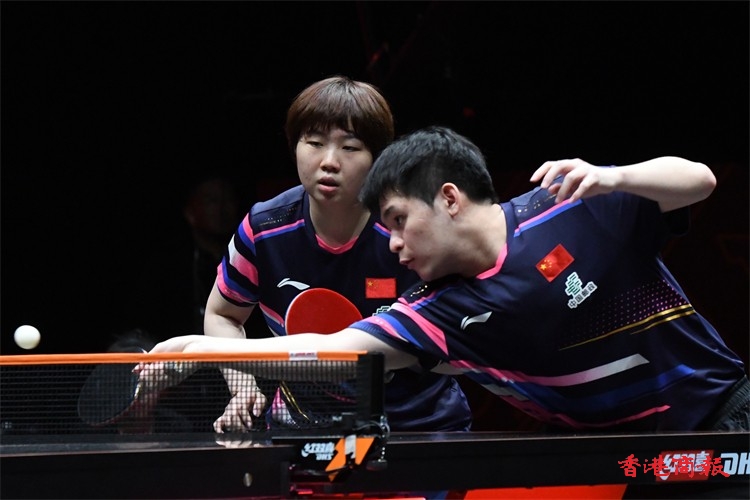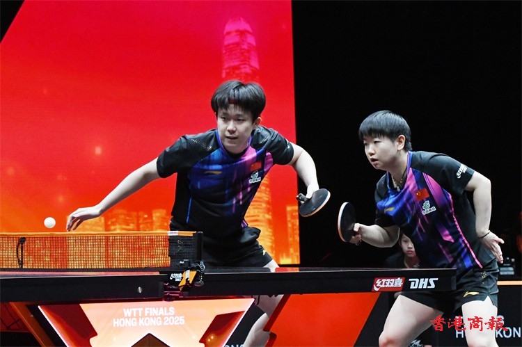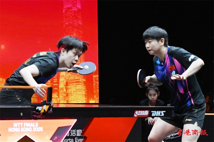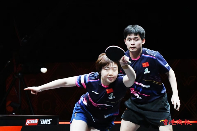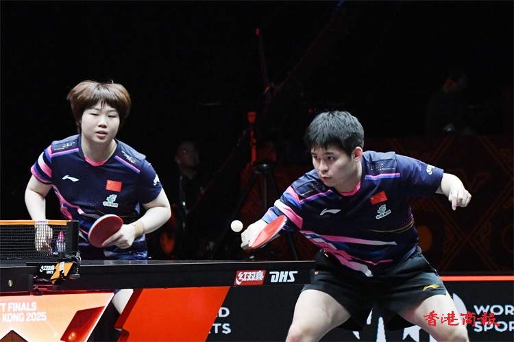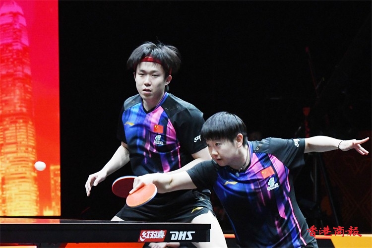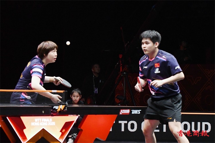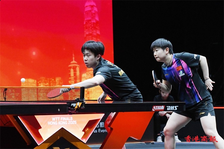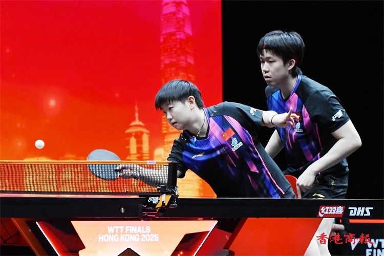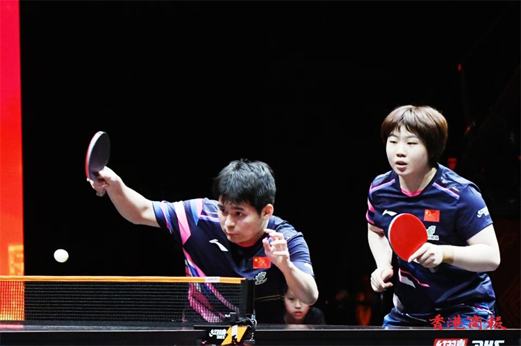 WTT香港總決賽今日(11日)繼續在紅磡體育館上演。在混雙小組賽中,王楚欽/孫穎莎以3:0戰勝林詩棟/蒯曼,比分為13-11、12-10、11-6,贏得混雙兩連勝。(記者 瀚文攝)