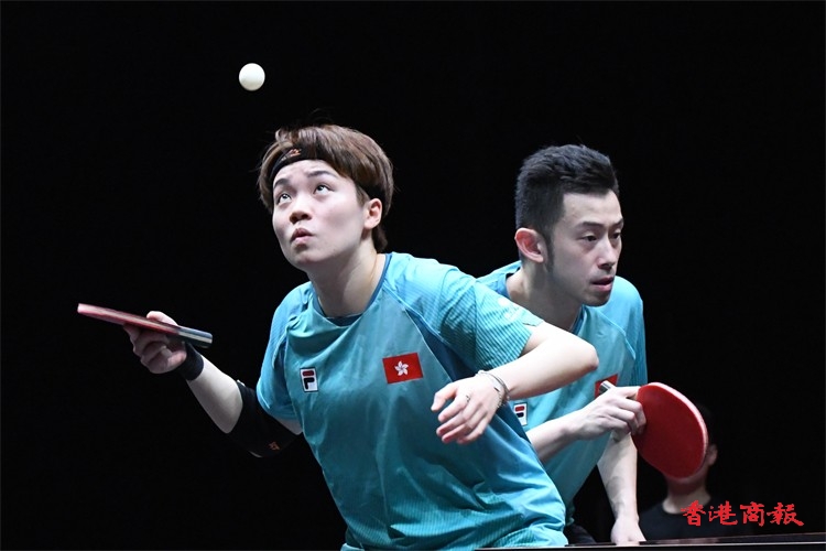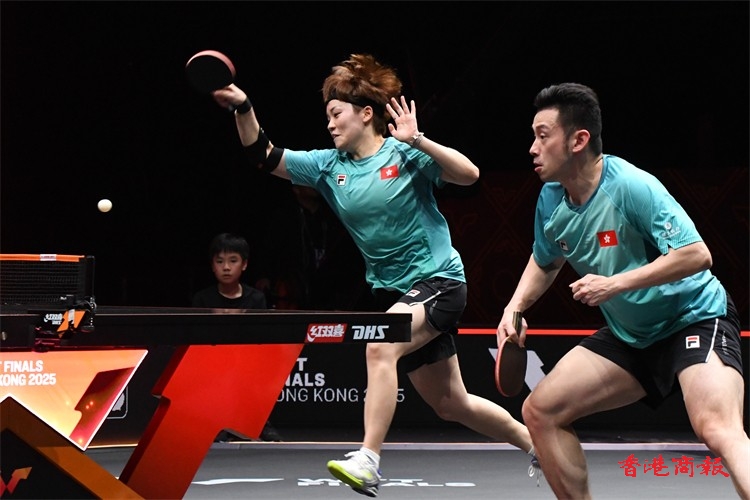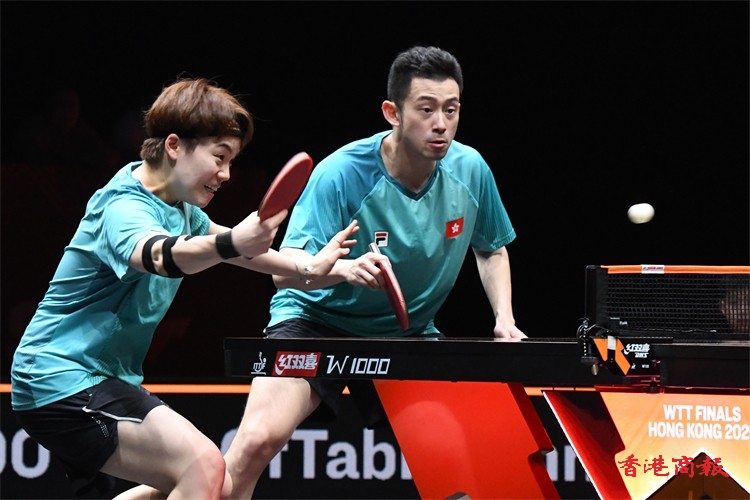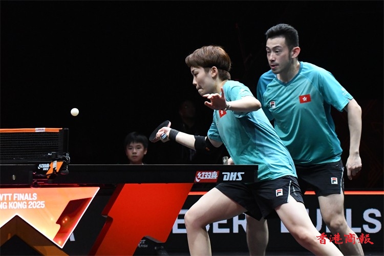 WTT香港總決賽今日(11日)繼續在紅磡體育館上演。在混雙小組賽中,黃鎮廷/杜凱琹3-2戰勝印度選手瑪納什·沙/奇塔萊,比分為11-7、11-3、4-11、10-12,11-4,拿下首勝。(瀚文 攝)