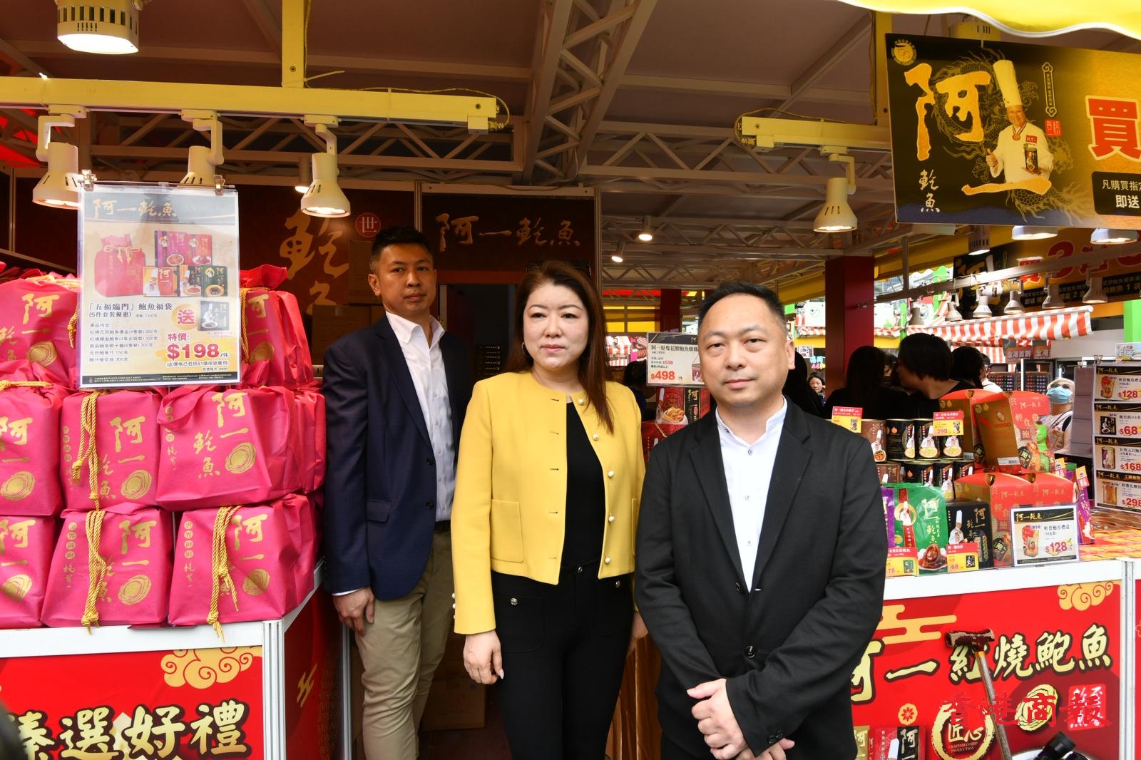 阿一鮑魚執行董事何國良(右一)表示,見到香港的最新旅客數字節節上升,對今年工展會的業績很有信心,預料會比去年增長15至20%。