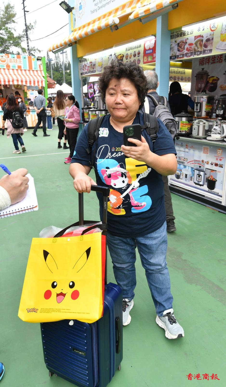從三潘市回港的李小姐帶同行李箱來購物,她說:「主要是想回憶一下童時的工展會。」