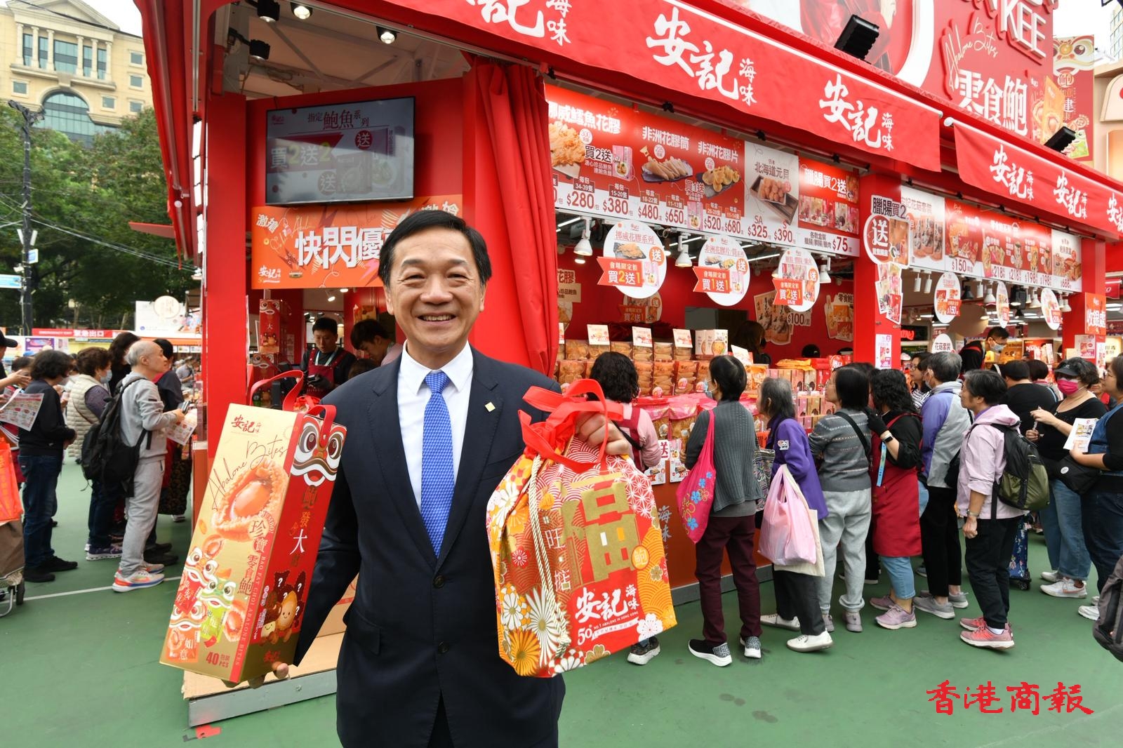 每年都有參展的安記海味今年推出零食海參、佛跳牆等新產品。董事總經理潘權輝表示,價值688元的福袋,我們賣240元,又推出快閃優惠賣198元。他說:「今天早上的人流非常好,往年一向是下午才會多人,今天是一營業就超多人,做展會頭三天很重要,因為人流多就會有口碑,傳媒多報道就會形成效應,之後的日子都會好生意,保守估計今年生意會增1成。」