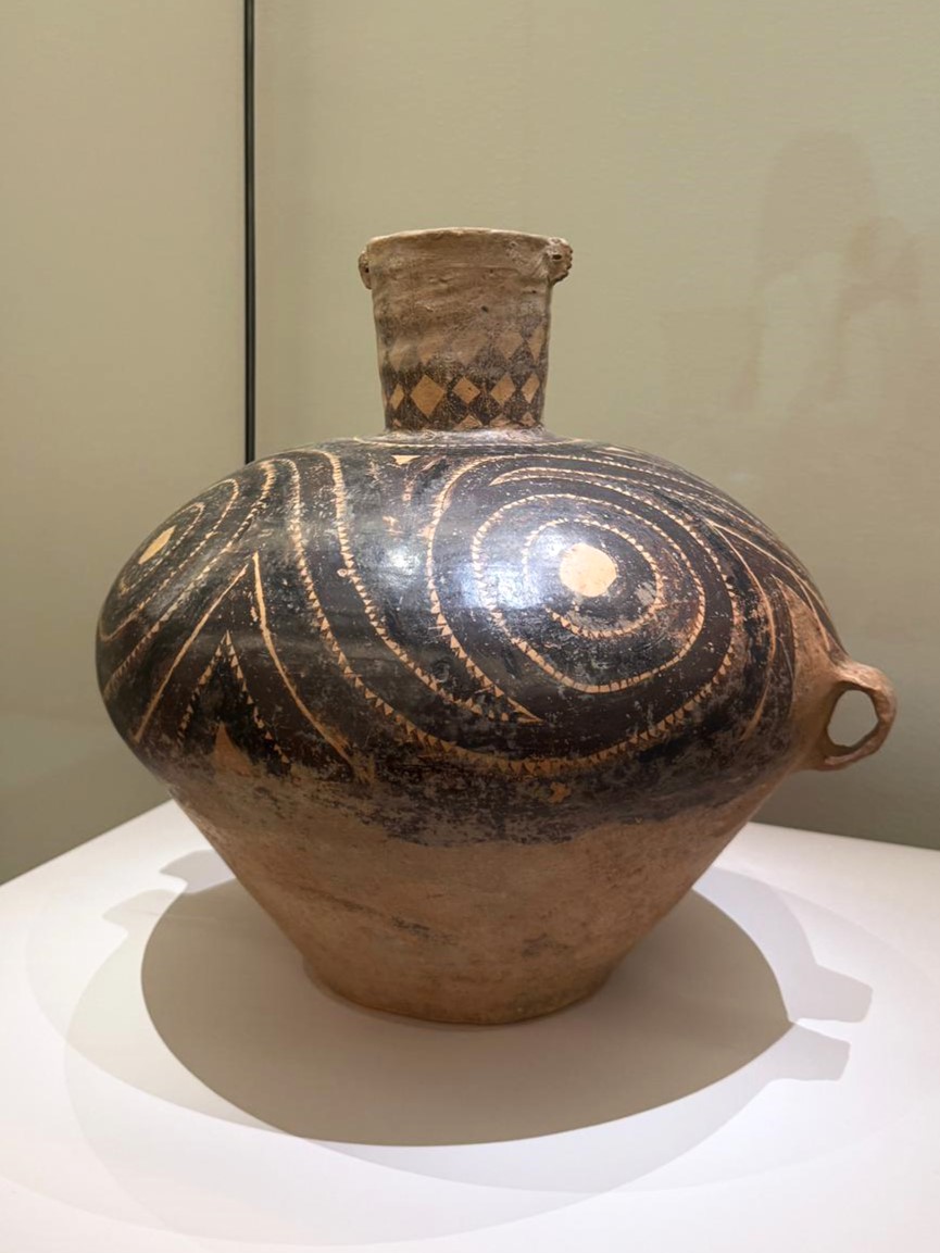 在展覽的尾聲,展示了中國與古埃及文物之間的對話,呈現了兩大古文明平行發展。展品「畫有船、人物和動物的罐」以紅色顏料描繪一艘甲板設有兩個船艙的船隻,船上載人與羚羊,其中最大、高舉雙臂的人物很可能是一位女神、女祭司或女舞者,連綿排列的實心三角形則可能是山脈或沙漠丘陵。展現了尼羅河是古埃及的交通命脈,因此水和船在埃及的日常生活及宗教信仰中均扮演了核心角色。與其並置展示的「漩渦紋壺」是來自中國馬家窯文化的雙耳壺,飾以簡潔有力的漩渦紋,線條流暢且充滿動感。漩渦紋是馬家窯彩陶最常見的紋飾之一,可能是象徵黃河奔騰流動的水流的藝術表現。兩件展品反映了尼羅河與黃河分別是古埃及與中華文明的搖籃,為農業生產及簽落發展提供了不可或缺的水源和肥沃的土壤。