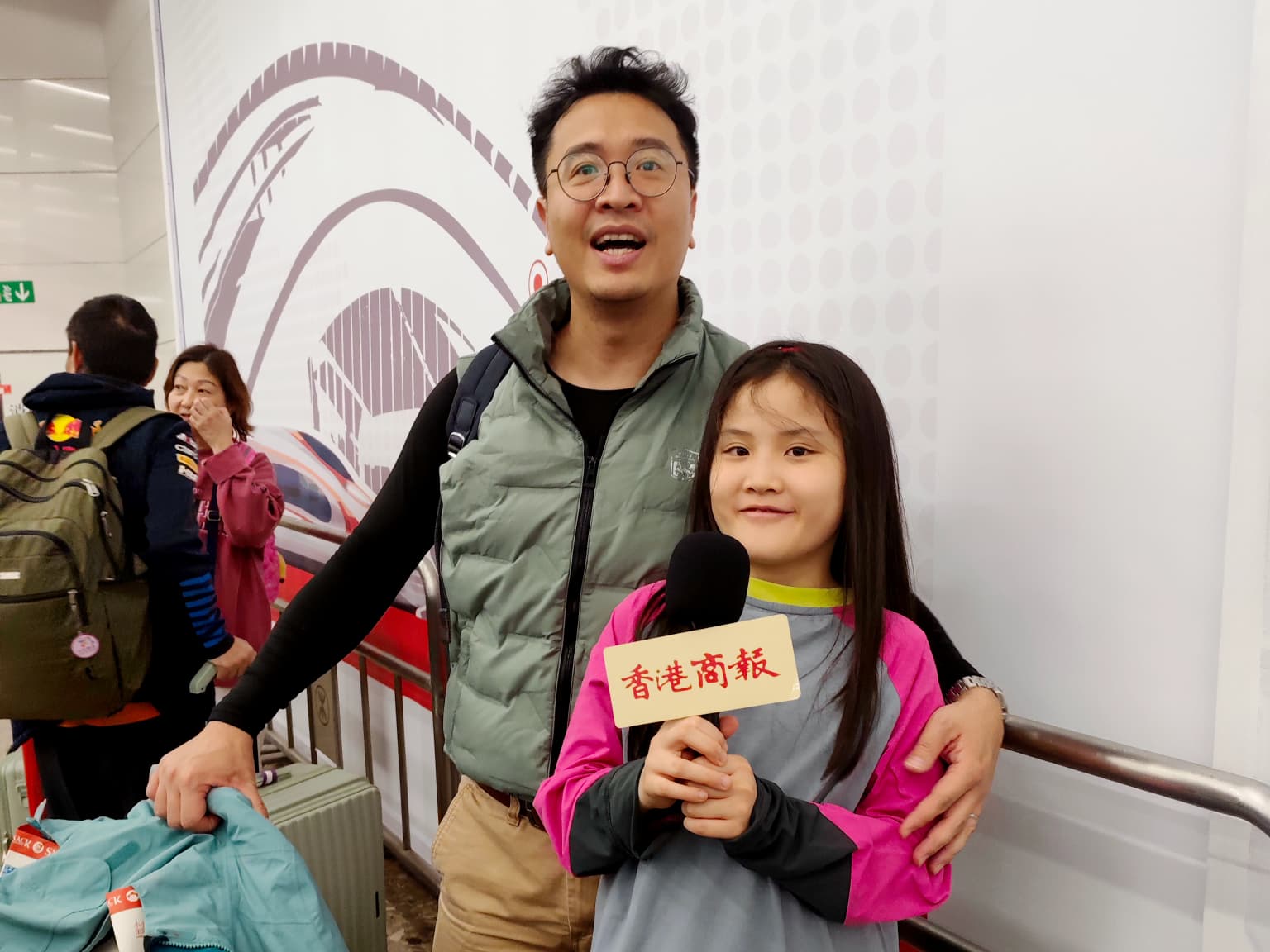 彭先生一家四口,同樣前往桂林遊覽五日,彭太表示他們一家是跟隨朋友,以及首次前往內地,欣賞當地山水風景為主。彭先生又透露,今次行程使費大約一萬元,當中酒店住宿和車資佔的比例較重,他們也認為乘搭高鐵方便快捷。