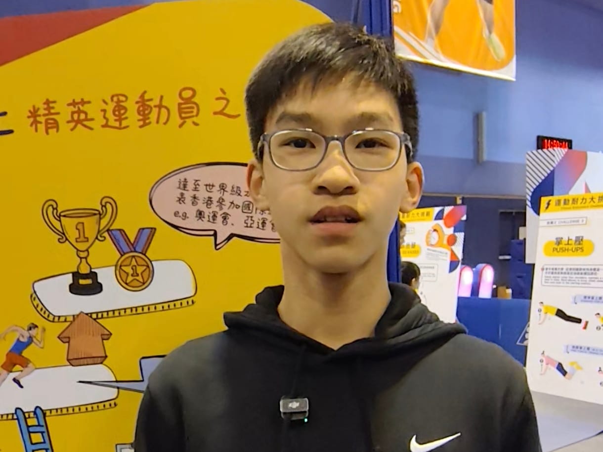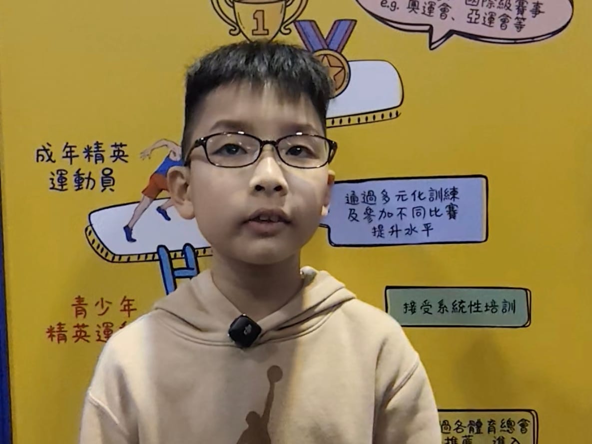 小學四年級李同學,最喜愛的運動是跑步,因為跑步的時候會流汗,流汗帶給他很舒服的感覺,同時可以有減壓的效果。他又說,早前曾參與校隊選拔,但未能成功入圍,下學年會再接再厲,再次參與選拔。李同學透露,個人最擅長的途程為短跑60米,偶像是已經退役的中國田徑運動員蘇炳添。