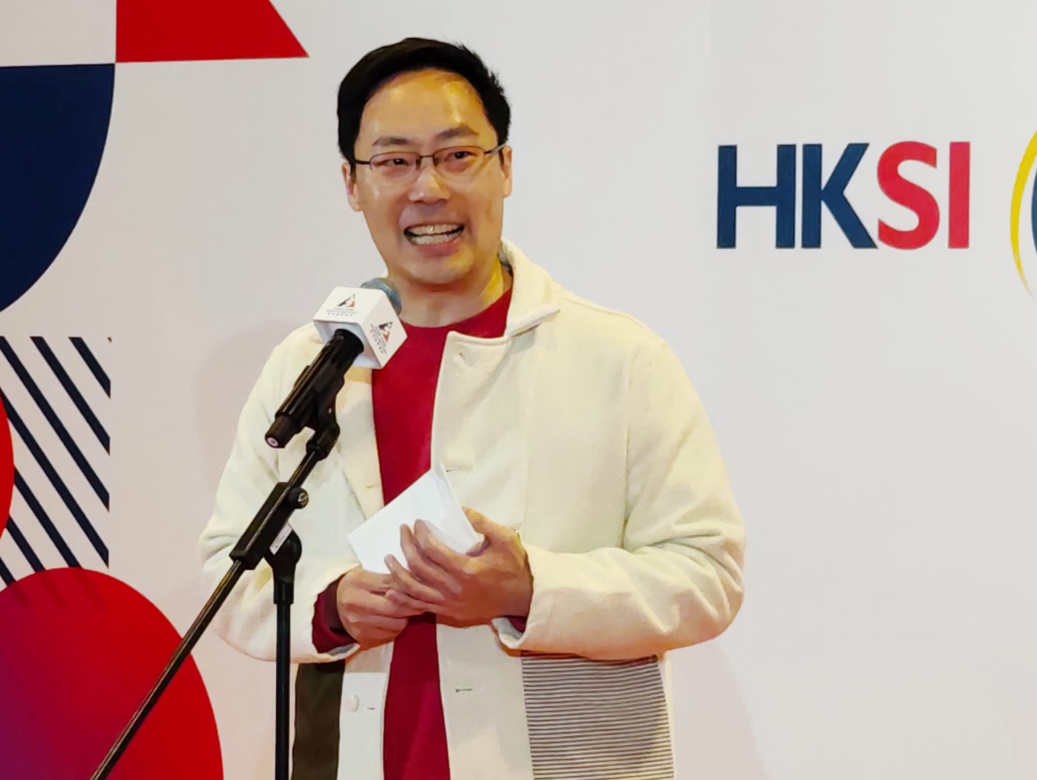 一身運動裝打扮的蔡健斌在活動上致辭。