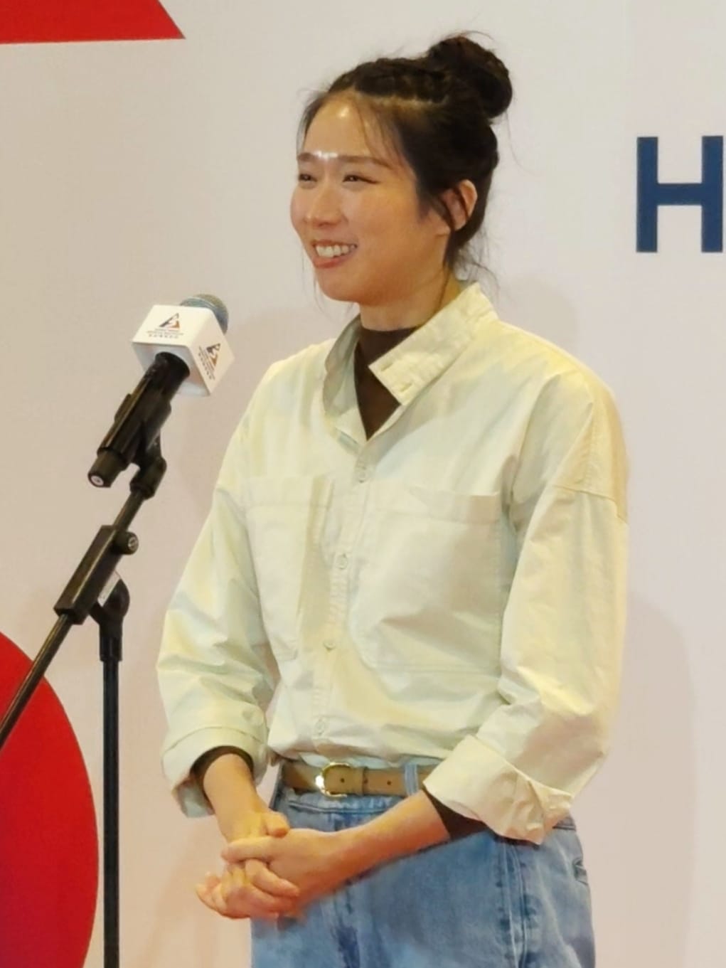 江旻憓向主禮嘉賓和參觀者表示「唔好意思」,她解釋事前沒有準備講稿,故不知道今天需要致辭,形容回到體院,「就如返到屋企一樣」,很高興見到許多家長,帶同小朋友前來體院參觀,她感謝體院多年來悉心栽培,以及特區政府支持,令一眾運動員可以追尋自己的夢想。江旻憓又祝願各位新一年身體健康和開開心心,以及「多啲做運動」。