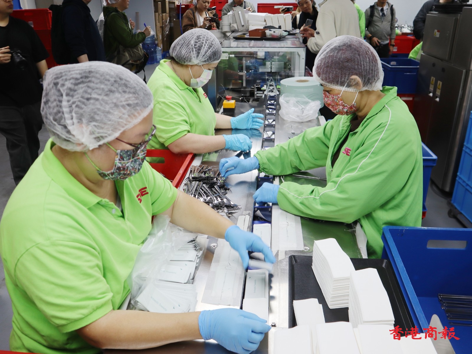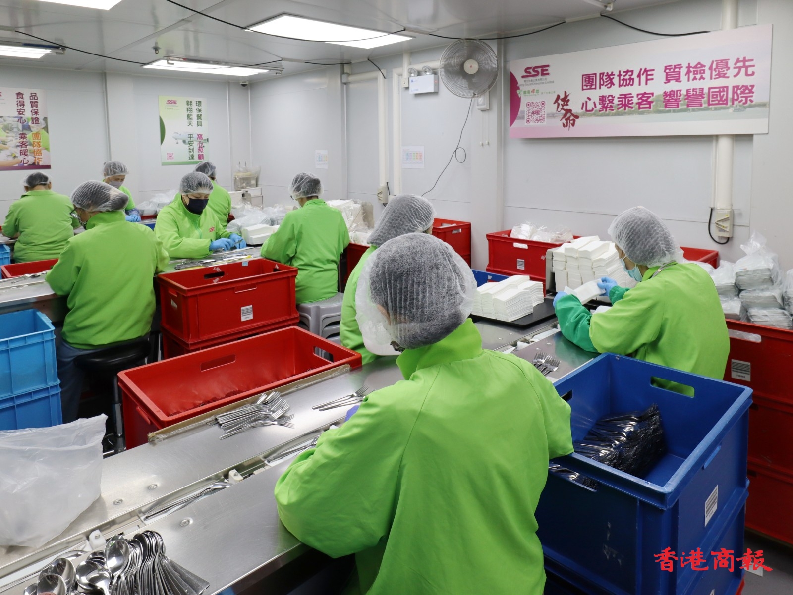 陽光社會企業2009年起與國泰餐飲合作,幫他們檢查餐具是否已清潔乾淨及包裝,平均每天包裝6萬套餐具,員工主要是家庭婦女和退休人士。