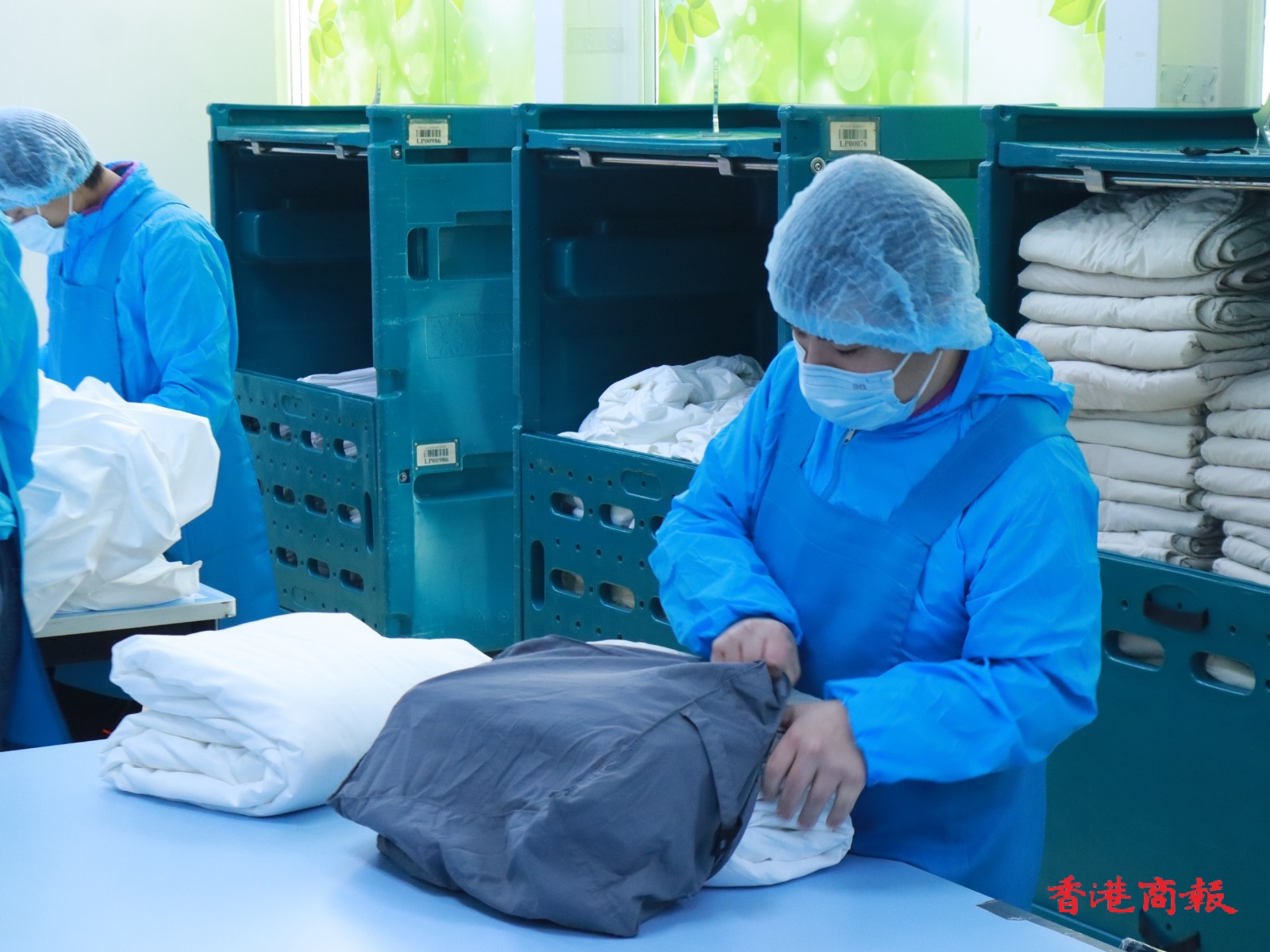 香港聖公會福利協會服務總監袁玉珍表示,旗下的康恩園是一幢綜合復康大樓,為神精復元人士、殘障院友提供培訓,協助他們就業、與社會共融。她說:「2022年起與國泰集團旗下的雅潔洗衣合作,幫國泰查檢、摺疊、包裝頭等倉用過的羽絨被,開始時每月只做到300多張被,後來我們的學員愈做愈好,現時已可每月做到3萬張被、3萬條毛巾、1萬條餐巾;將來還會愈做愈多。」