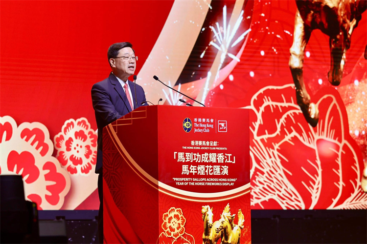 李家超表示,馬年奔騰而至,讓我們同心協力,為香港繁榮穩定全力奮進,共同開創更美好的未來。我將帶領特區政府與全港市民一同昂首闊步、勇往直前,跑出新速度、創出新成績!