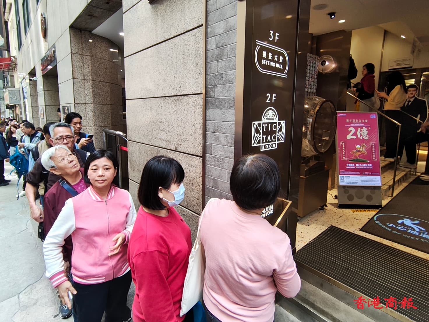 六合彩新春金多寶將於今晚(21日)攪珠,馬會估計若頭獎10元一注獨中,幸運兒可獨得2億元彩金。港商記者今天中午到開出最多頭獎次數的中環士丹利街投注站了解,見到現場有逾600人排隊,平均須要排3小時隊才買到彩票。很多市民表示,若中了大獎首先會做善事,其次是買樓。