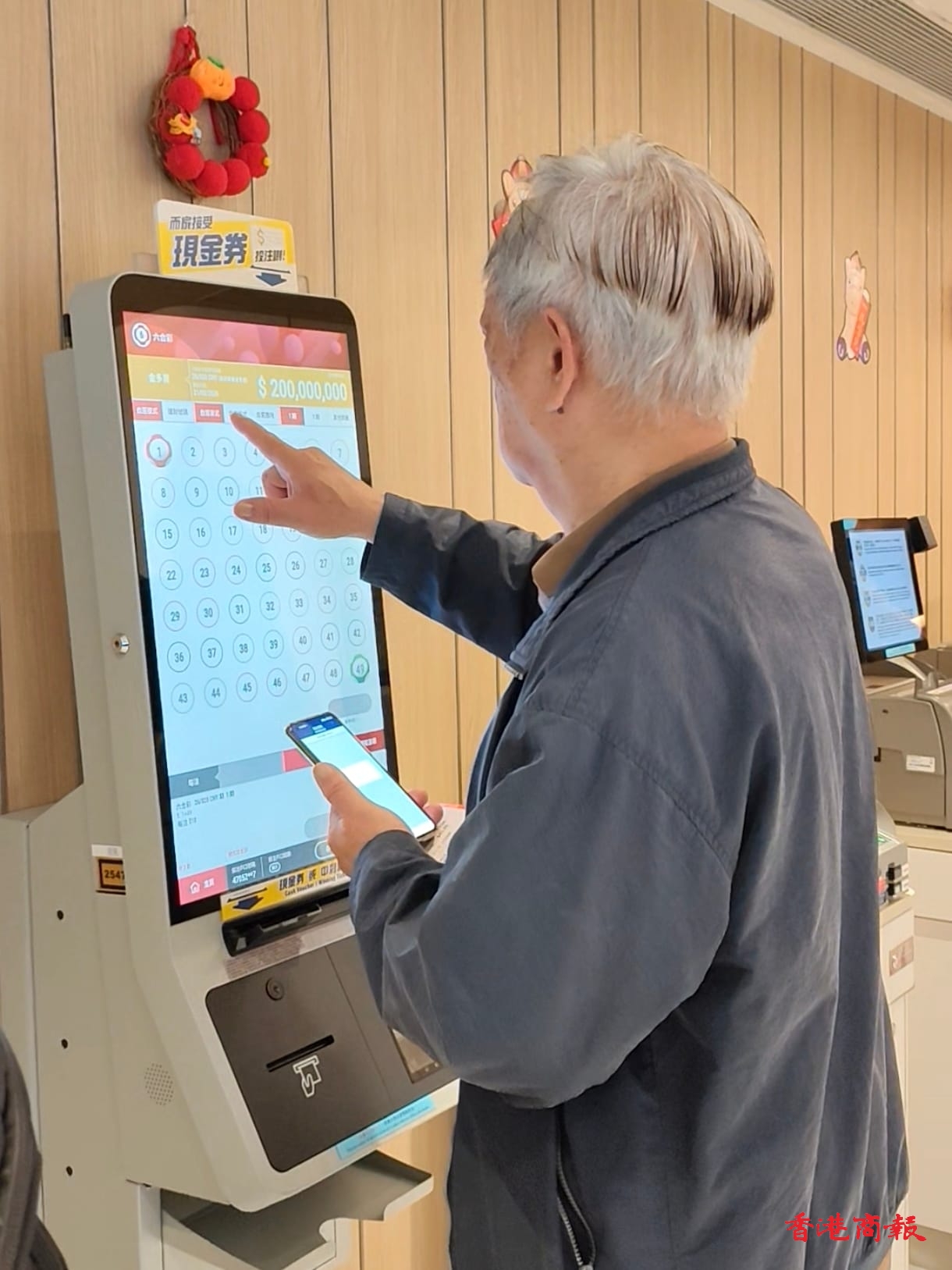 從事建築行業、來自將軍澳的劉先生表示,曾經中過一次六合彩1200元,當時是在這間投注站買的,所以今次專程來買,今天會用2000元買電腦彩票。他說:「我平時只會在大彩池的時候才買六合彩,平均每次都是買1000多元,如果中了2億元,我蹭買很多間屋分給子女,自己就會周圍旅遊。」