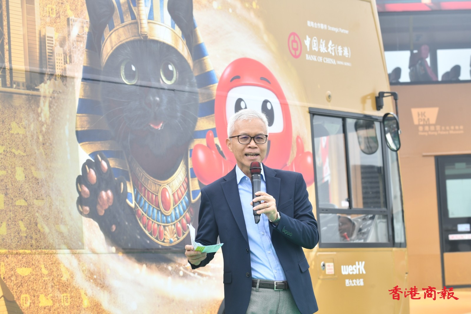 九巴商務總監張以行表示:「九巴對能夠與香港故宮文化博物館展開跨界別合作,延續『古埃及文明大展』熱潮,感到十分欣喜。九巴扎根香港九十三年,服務深入社區,積極擔當『城市脈搏』角色。是次合作透過『九巴法老貓號』主題巴士行走城市不同角落,向廣大市民和遊客展現古埃及文明的獨特魅力,體現九巴致力善用公共交通服務網絡,攜手與不同界別合作,推動文化、藝術和旅遊發展。」