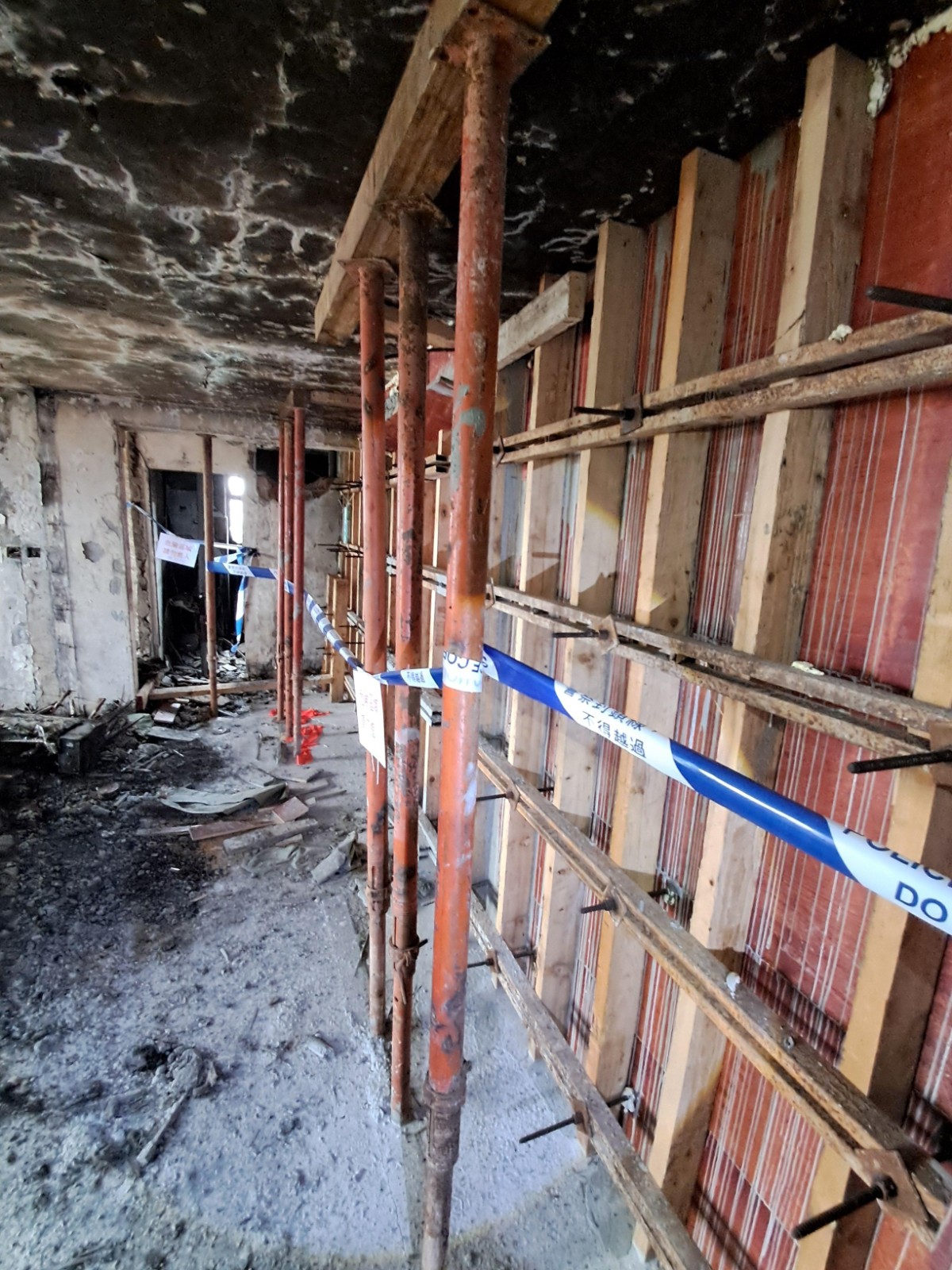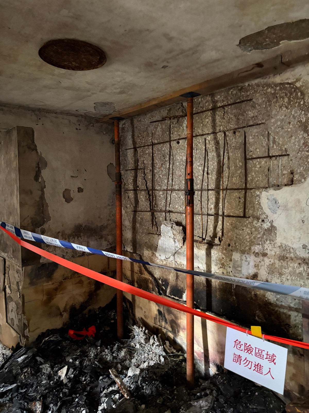 政府公布遭大火焚燒的單位內部情況。政府新聞處
