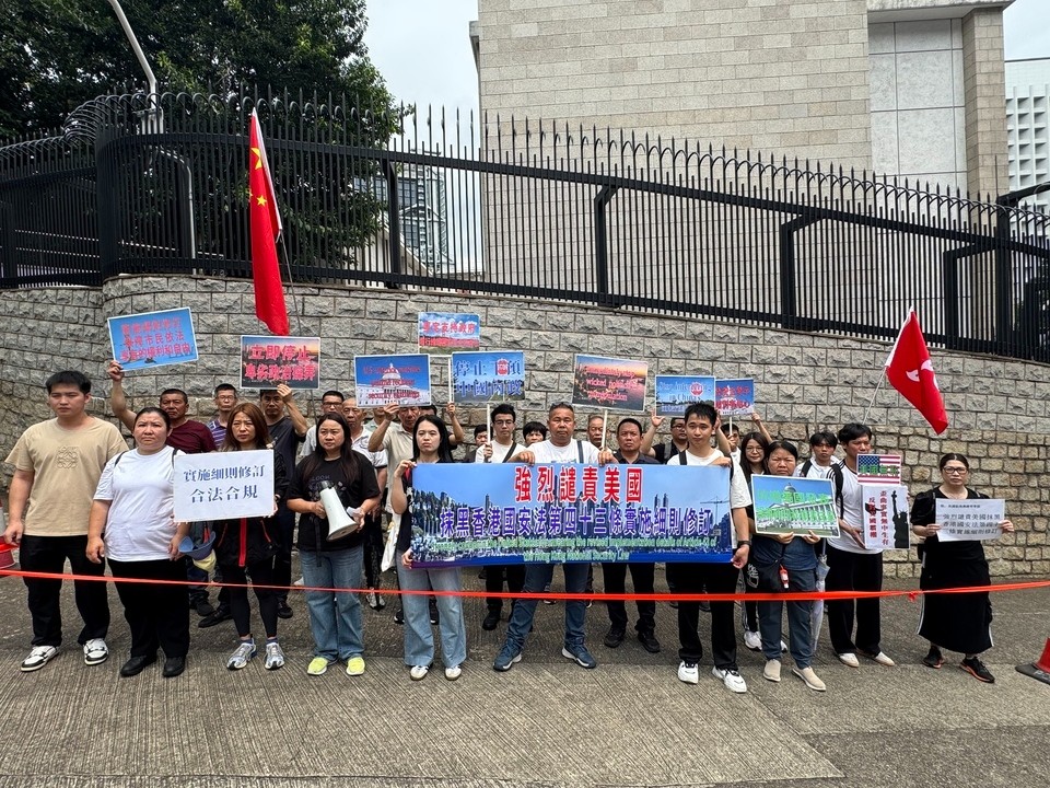 民建聯副主席周浩鼎、陳恒鑌、副秘書長張琪騰、選舉委員會界別立法會議員何俊賢、港島東立法會議員植潔鈴、新界西南立法會議員郭芙蓉、新界北立法會議員姚銘、漁農界立法會議員陳博智及多名民建聯區議員到美國駐港澳總領事館示威,表達不滿。