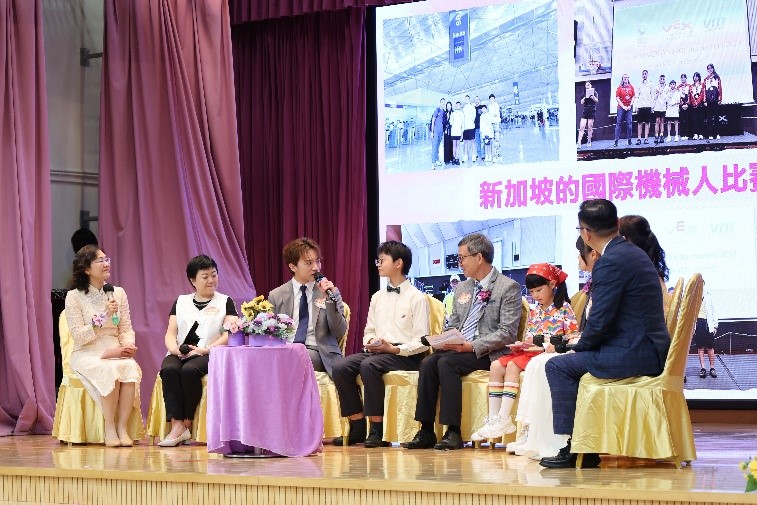 署理教育局局長施俊輝致辭時表示,為了配合國家「十五五」規劃、科教興國戰略和教育數字化行動,教育局正全速推進《中小學數字教育藍圖》的編訂工作,目標在今年內發表,內容涵蓋推展數字教育的具體方案。由於施博士正是數字教育策略發展督導委員會主席,憑藉其科技與數據分析的專業背景,多年來積極為香港中小學推廣多項前瞻性改革。施博士更讚揚該校積極推行普通話教學並積極配合教育局推動創科及數字教育的政策,近年持續優化STEAM及人工智能(AI)課程,更設立了「科技創意室」、「創意科學園」及「創意積夢園」等專用學習空間。該校學生透過學習電子積木、編程、3D打印、無人機及機械人設計等實踐活動,培養探究精神與解難能力。近年於本地及國際機械人比賽屢創佳績,並將於四月底代表香港出戰海外國際賽事,展現卓越實力與國際視野。