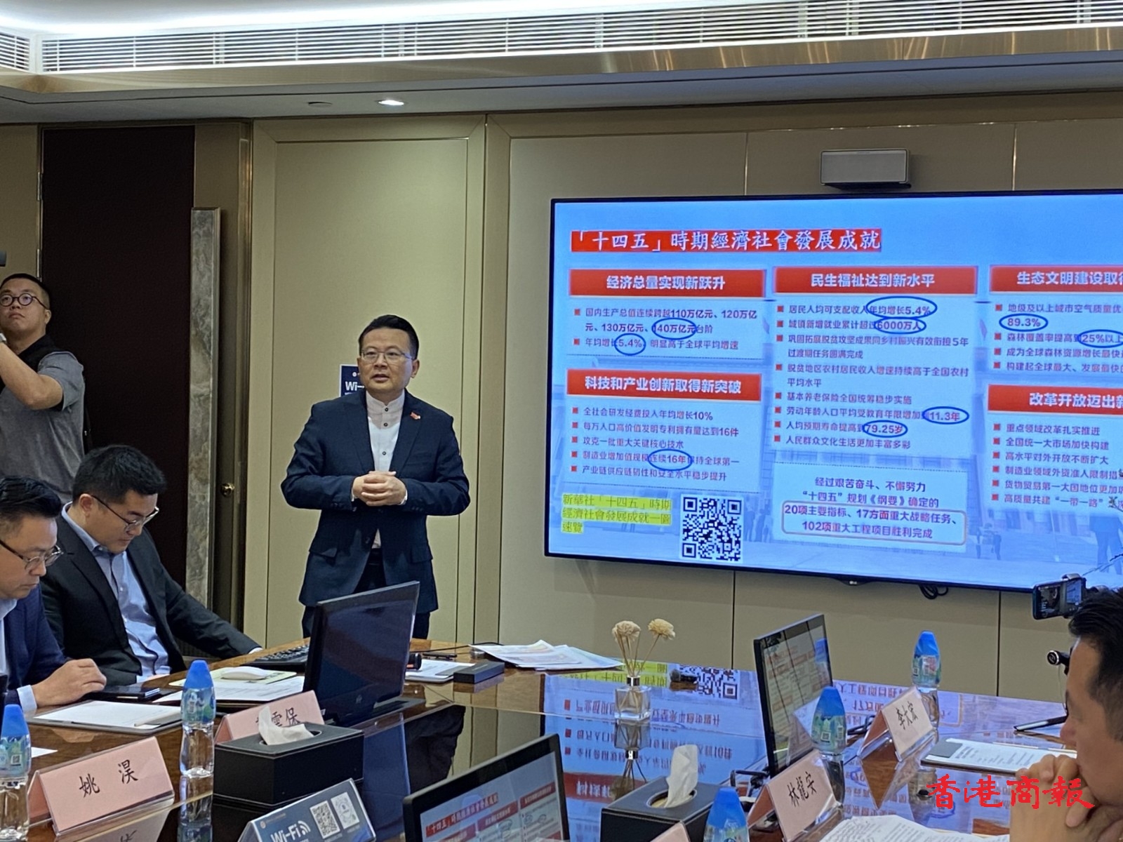 港區全國人大代表、香港立法會議員陳勇分享時稱,國家支持香港鞏固提升「10個中心、2個樞紐」定位、加快北部都會區建設等涉港政策,明確香港將編制首份五年規劃主動對接國家戰略。他聯合港區代表提出「電‑算‑碳」一體化支撐北都發展等七項重點建議,推動香港在科技創新、綠色發展、粵港澳大灣區合作等領域深度融入服務國家發展大局,實現長期繁榮穩定。