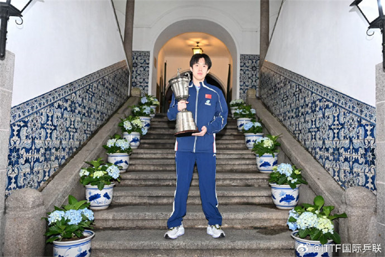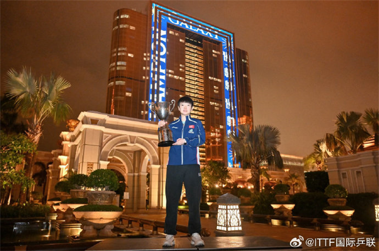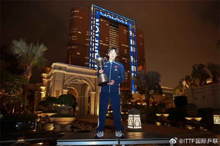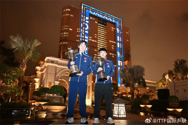 2026澳門世界盃男單王楚欽、女單冠軍孫穎莎奪冠後,前往中國澳門市政署大樓等處拍攝冠軍城市宣傳照。