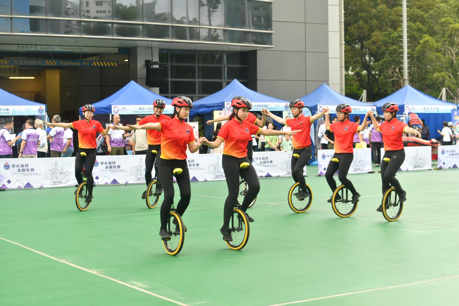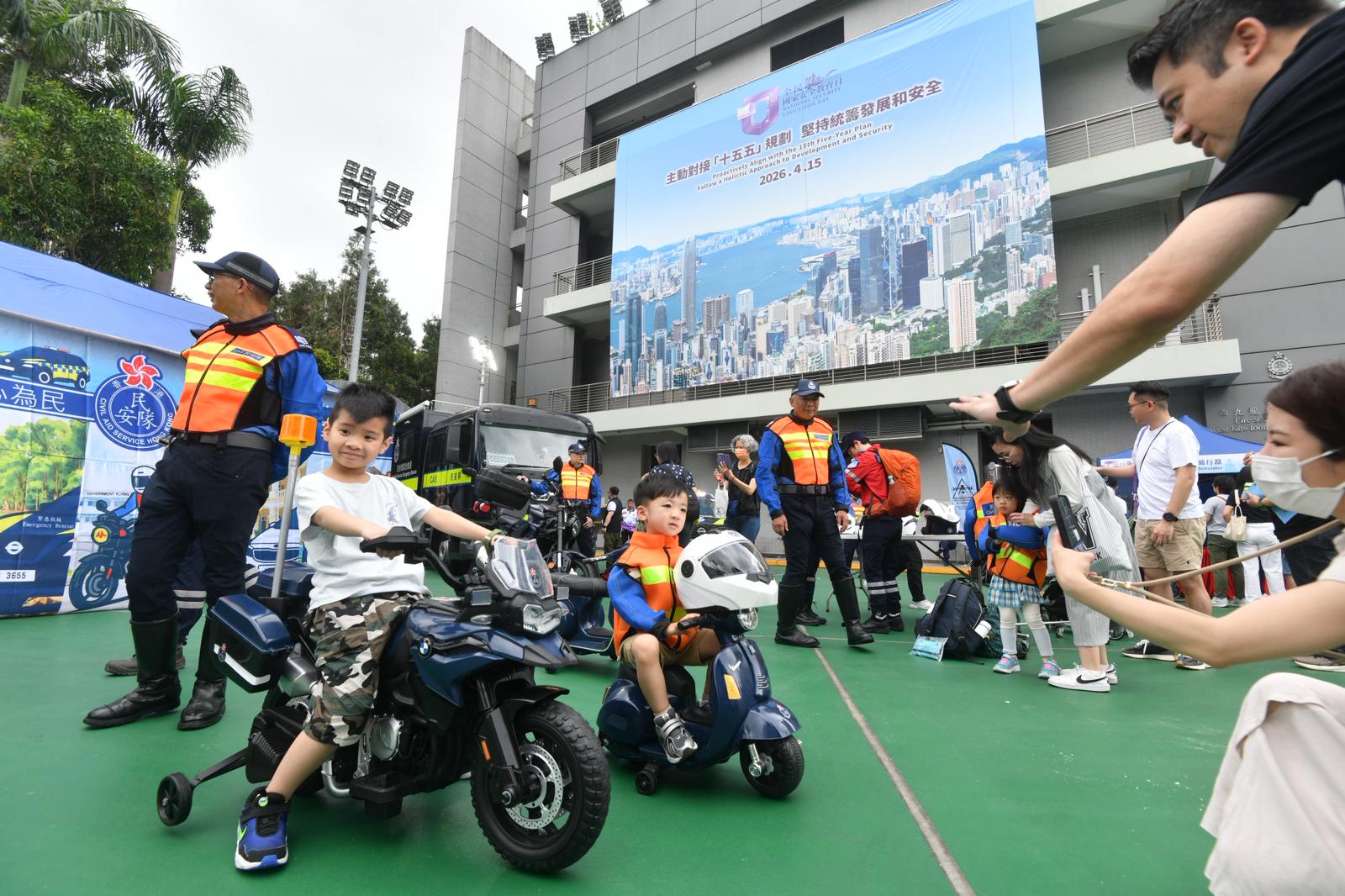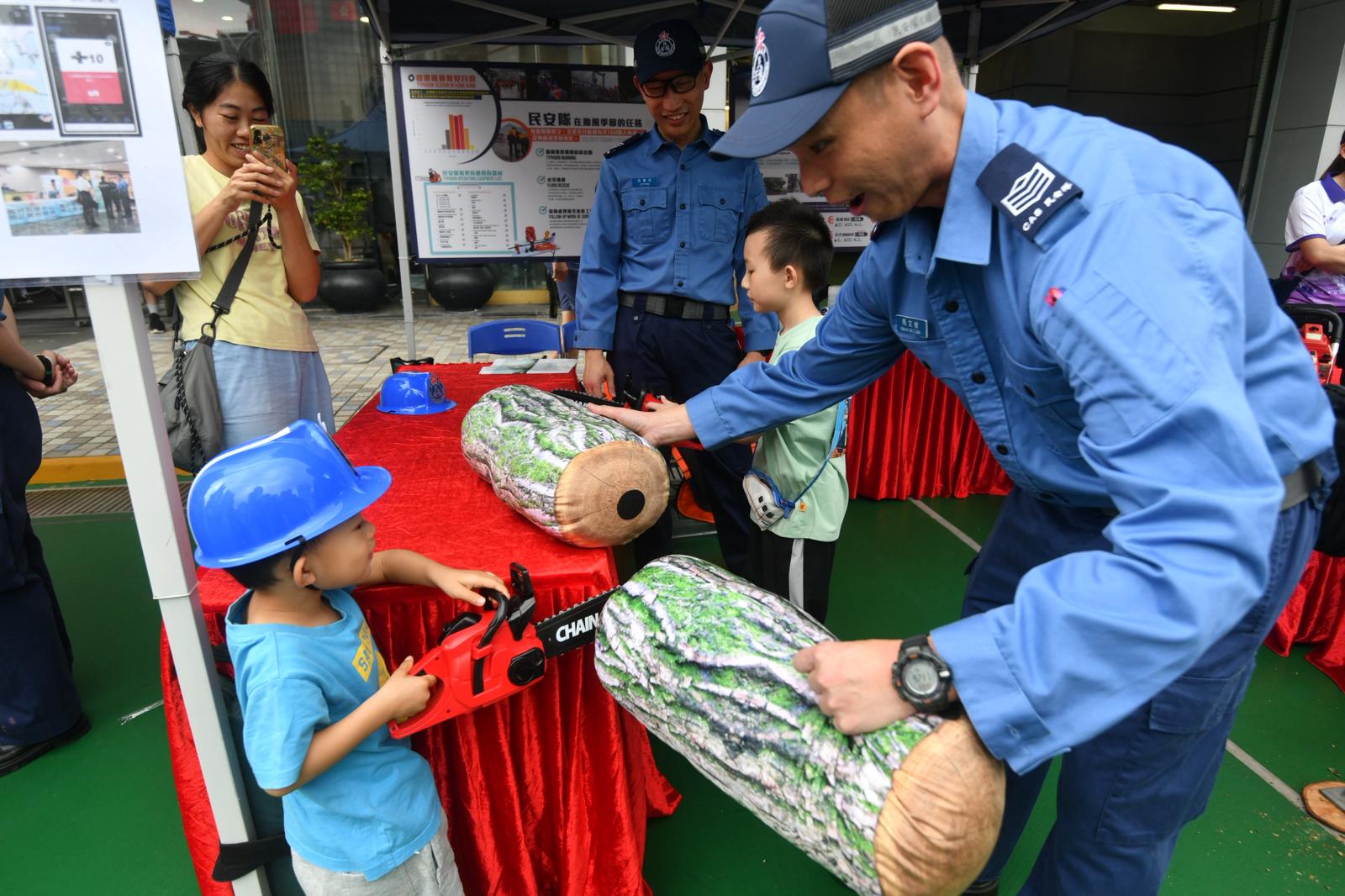 開放日活動內容豐富,包括國家安全教育展覽、國家安全教育講座由民安隊副處長(發展及少年事務)黃江天主講,介紹《「一國兩制」下香港維護國家安全的實踐》白皮書、緊急及山嶺救援演練、搜救器材展示、樂隊表演、花式單車表演、虛擬實境救援體驗、無人機操作體驗、歌手獻唱及攤位遊戲等,也包括少數族裔人士的攤位。(記者 葉家亨/攝影 崔俊良)