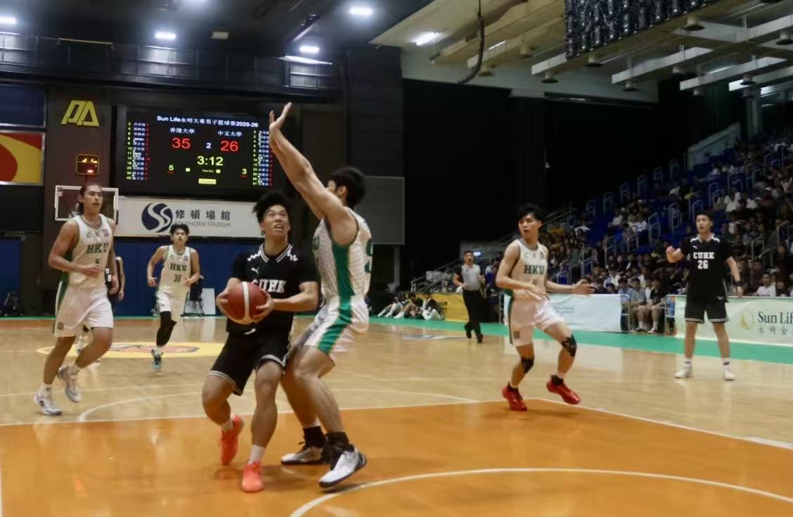 「Sun Life永明大專籃球賽」今日(11日)於修頓室內場上演決賽日,壓軸戲男子組賽事,香港中文大學成功克服落後12分的劣勢,憑着蔡浩東末節冒火狂轟11分,最終以74比72反勝香港大學,自1992/93學年後再度封王。全場貢獻21分、11籃板的葉茂盛榮膺最有價值球員(MVP)。
