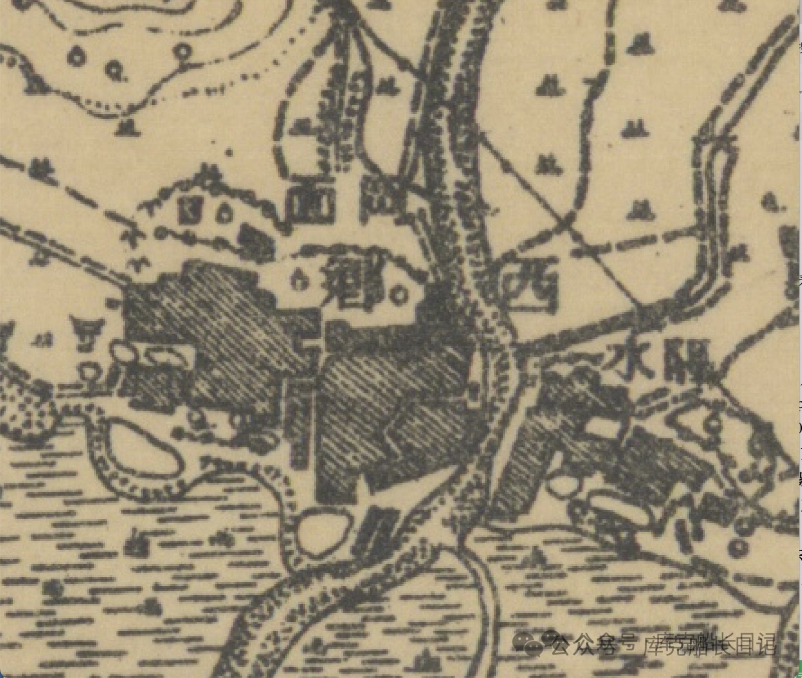門前兩棵大樹,不是榕樹。左邊是河西二坊。西鄉古村看畢。一萬步。再次確認,河西一坊1號在河邊,龍珠山頂之東南下。那裏的西鄉河是平的。民國《寶安縣》圖:月塘南面是窄沙堤,堤下即灘涂。而沙頭坊地方是灣到裏面的海灣,灣頂沙堤,沙頭坊非古建築。巡撫廟右首前即海。而綺雲書室及小學是古村的果園,民國十九年未有綺雲書室。學校應有荔枝。樂群舊村後及西面有幾個小塘,所謂下塘也。上方黃屋村接固戍來的大道。那棵榕樹也看到了。航拍圖黃屋村多樹,是古村。它在崗面(龍珠山頂)的西南坡下。一坊更多大樹,古居上方山腳也,亦汲河水方便也。