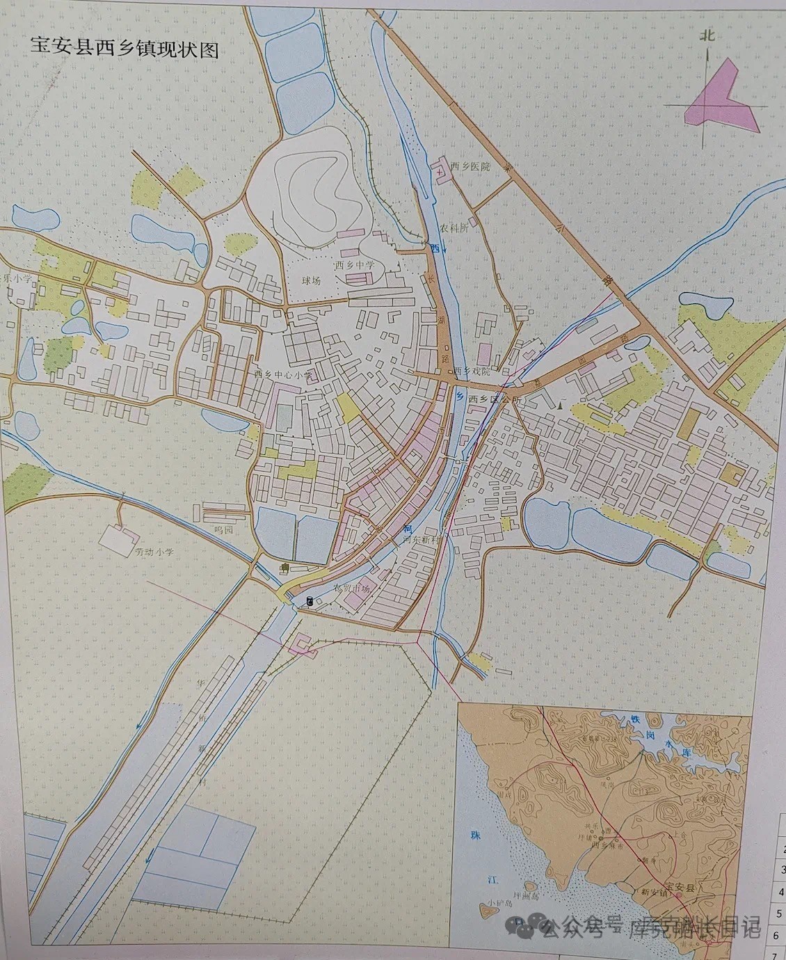 一句話:西鄉中學(初中部)後面,有一個海拔20多米小山崗,稱作龍珠,河西村在此崗南面,因此亦稱崗面。《深圳市自然資源與經濟開發圖集》(1985年)有西鄉鎮現狀圖。還是有一條小溪自龍珠山東側在醫院前一點點流入西鄉河。而永安商業城那裏是西鄉區公所。龍珠山頂是原裝的,開始規劃別墅。西鄉市場為農貿市場,前面有油碼頭。此圖集稱龍珠山為光面山(崗面),19.4米。南約2公里為坪洲島。