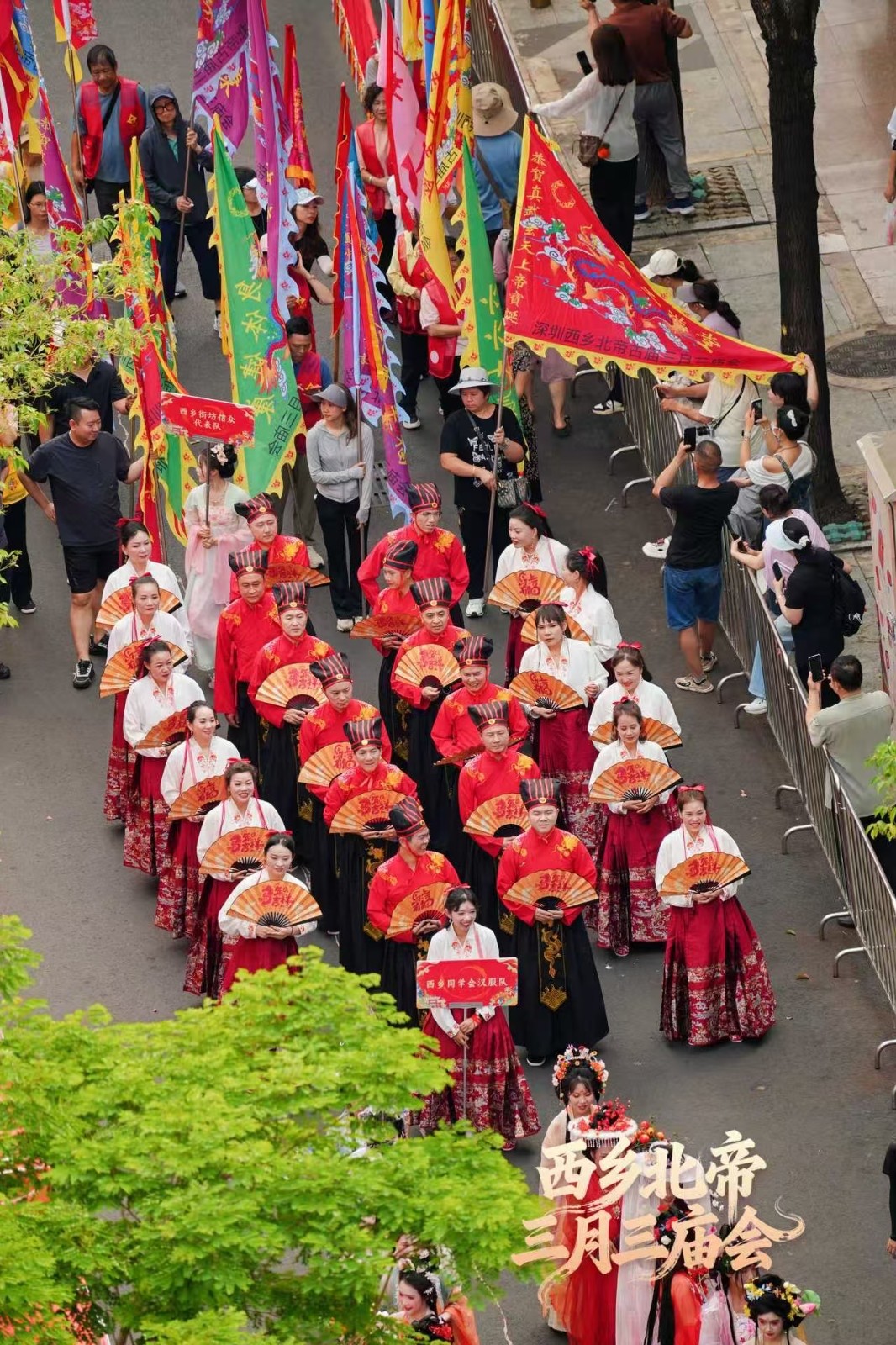 西鄉北帝三月三廟會作為省級非物質文化遺產,不僅是嶺南農耕文明與海洋文化交融的歷史見證,更承載着深港兩地同胞共同的文化記憶與鄉愁情懷。從區級非遺晉級省級非遺,從省級「四季村晚」躍升為全國春季「四季村晚」示範展示點,廟會的每一次提檔升級,既是寶安對非遺活態傳承的有力實踐,更是灣區文化軟實力持續提升的生動縮影。