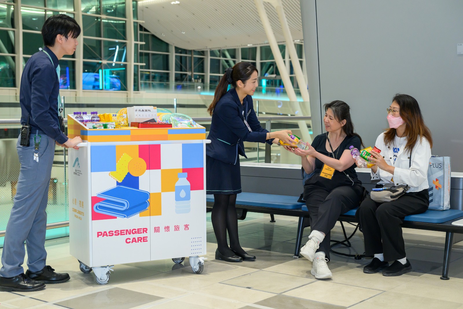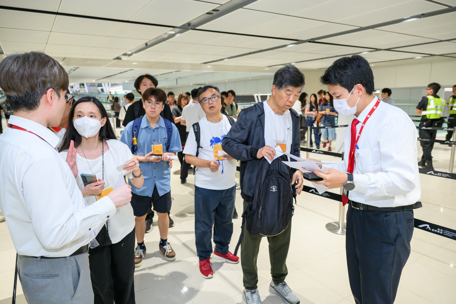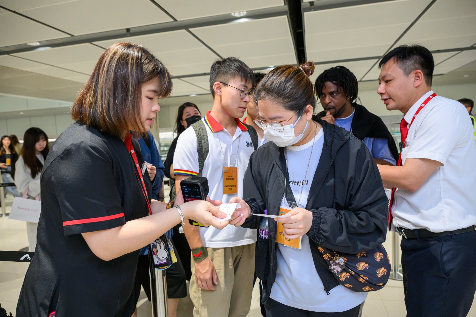 一號及二號客運大樓在演習期間進行人流管理演練,機管局當值人員、航空公司地勤人員和機場保安等引導及控制旅客人流,並向受影響旅客派發樽裝水與乾糧。機場亦實施緊急行李處理安排,以應對行李積壓情況。同時,停機坪上都進行登機橋繫固及還原工作,以確保安全。機管局還啟動機場緊急應變中心,以促進各持份者之間的有效溝通和協調,並透過航班重新編配程序為航班有序恢復服務作出規劃。