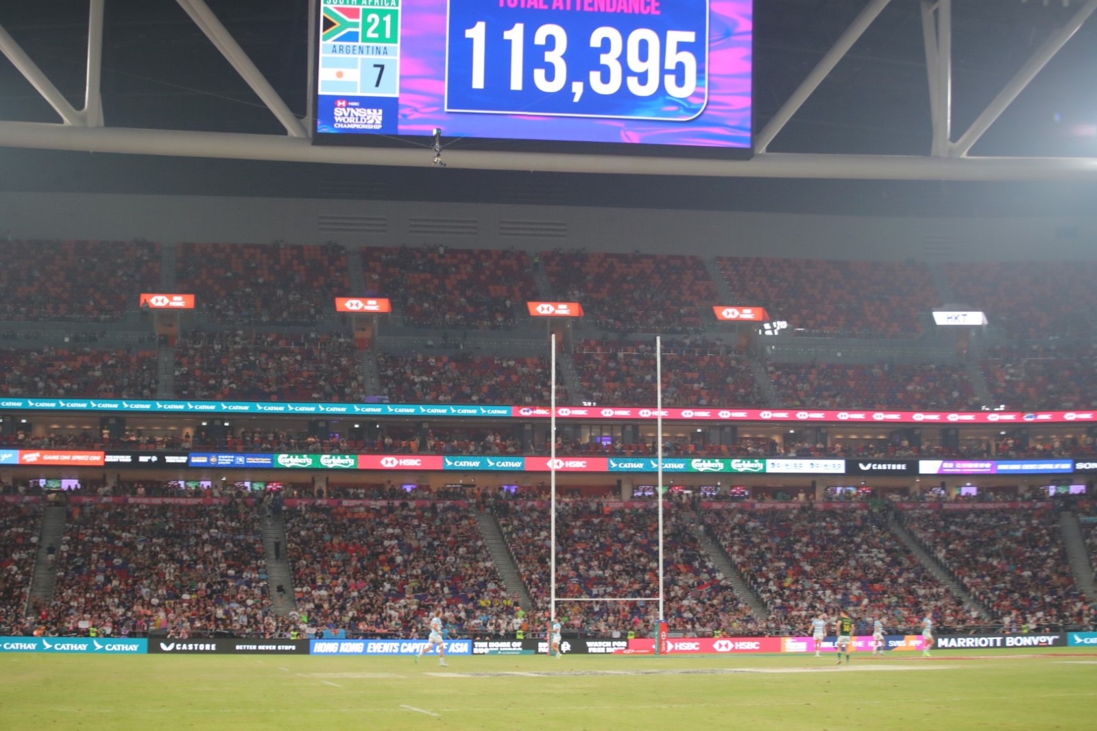 一連三日的「國泰/滙豐香港國際七人欖球賽」周日(19日)於啟德主場館完美落幕。今年賽事正值50周年,最後一日入場人數為37570人,三日賽事累計113395名觀眾人場觀戰,較上年首次在啟德作賽微升2.2%。當中次日賽事吸引41457人進場,打破賽事單日入場人次紀錄,場面非常熱鬧。