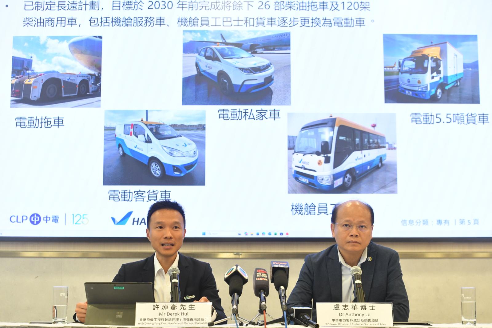 引入首輛飛機專用重型電拖車方面,港機訂立車隊電氣化路線圖,並於2025年在香港國際機場引入首部飛機專用重型電拖車。目前已有9部柴油拖車轉為電動,並計劃於2030年前,將餘下26部柴油拖車及120柴油商用車(包括機艙服務車、員工巴士及貨車),全面更換為電動車。