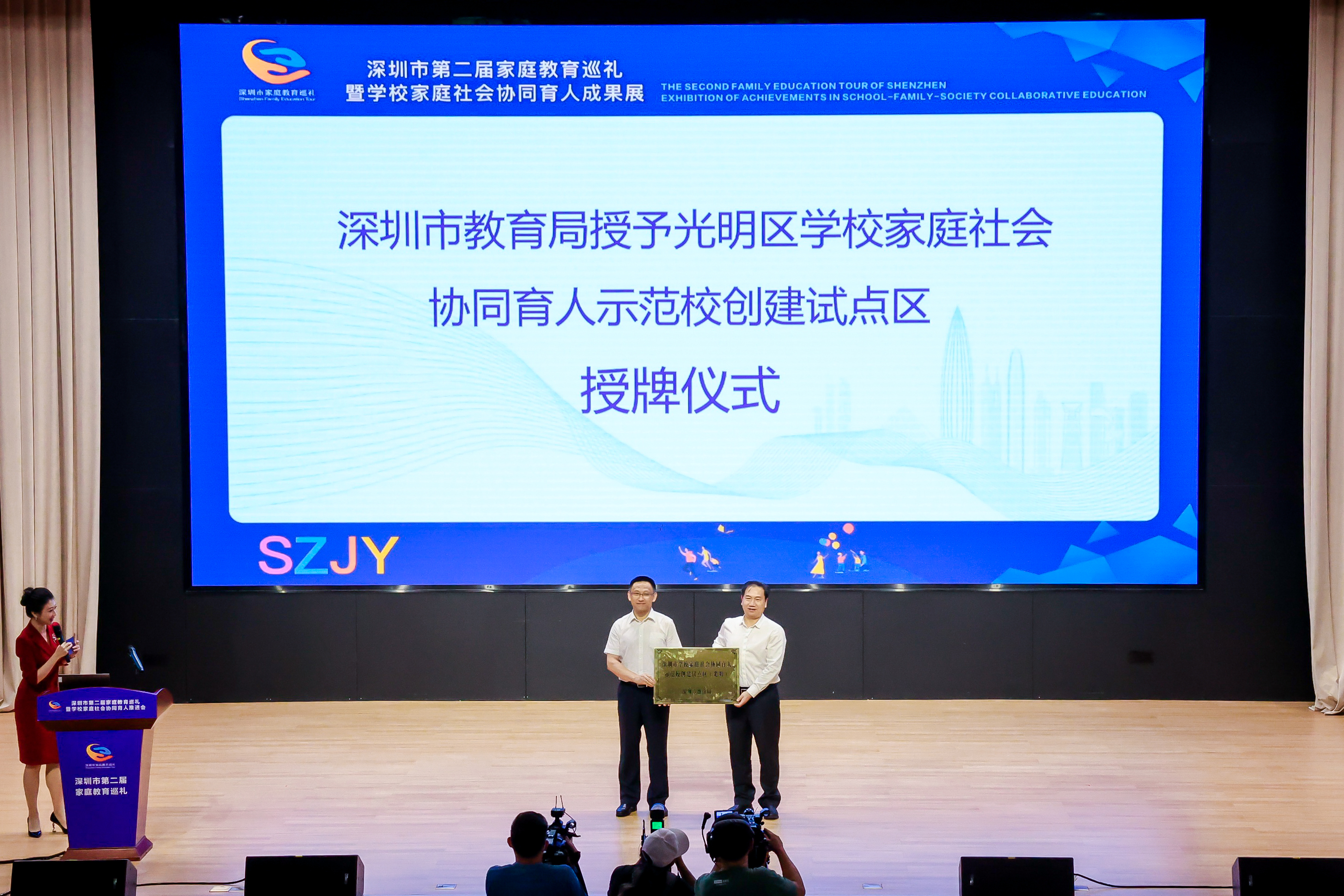 5月15日,在深圳市第二屆家庭教育巡禮啟動儀式暨學校家庭社會協同育人推進會上,光明區教育局主要負責人作了《構建全鏈條家庭教育服務體系 探索家校社協同育人新機制》主題發言,向全市推介光明區家庭教育工作經驗。