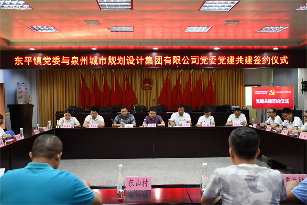 座談會上,泉州城市規劃設計集團還與東平鎮簽訂黨建共建協議,為東平鎮鄉村振興提供常態化智庫支持。同時聽取東平鎮招商辦負責人推介東平鎮招商項目,尋求並推介東平鎮招商引資合作空間,更好地助力鄉村產業發展。